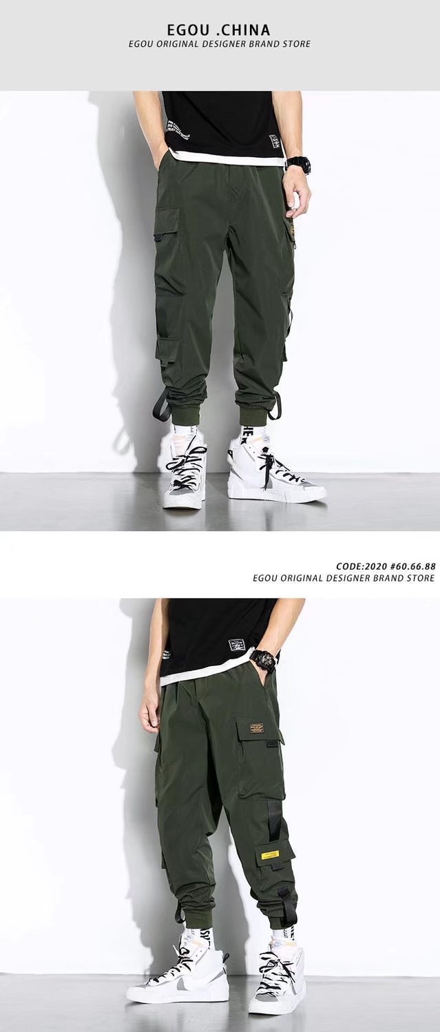 오버볼 남성용 얇은 느슨한 패션 브랜드 발목 묶은 멀티 포켓 캐주얼 올 매치 플러스 사이즈 크롭 긴 바지 남자 여름스토어 가기