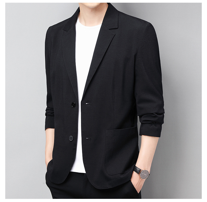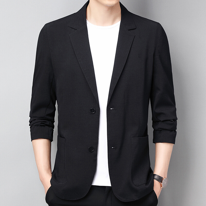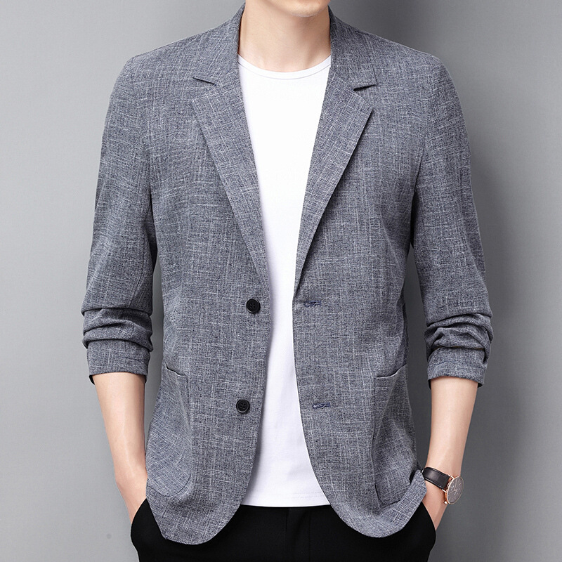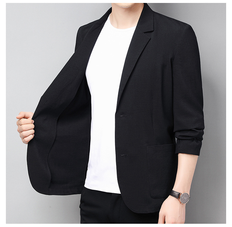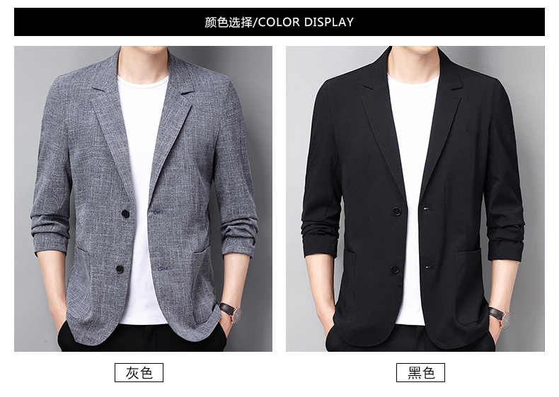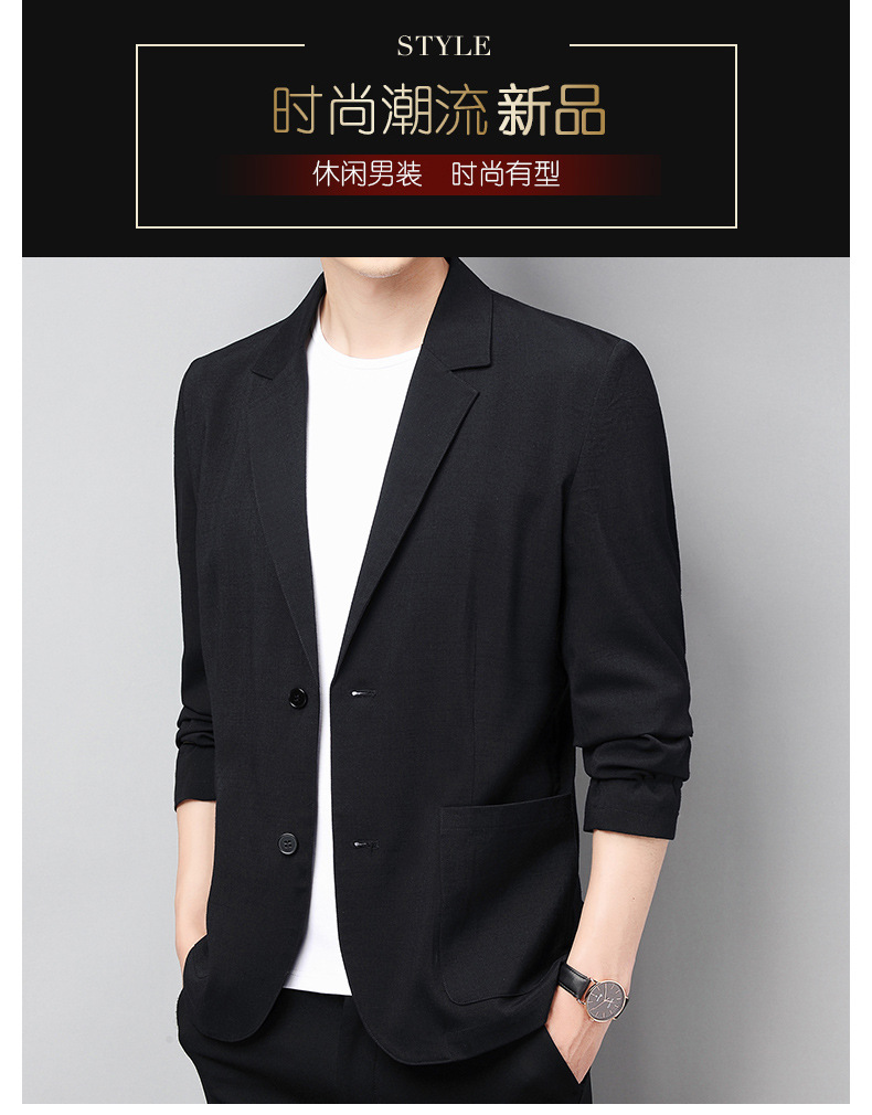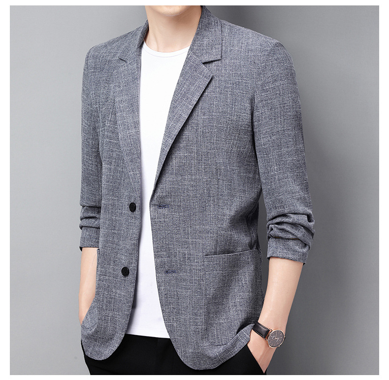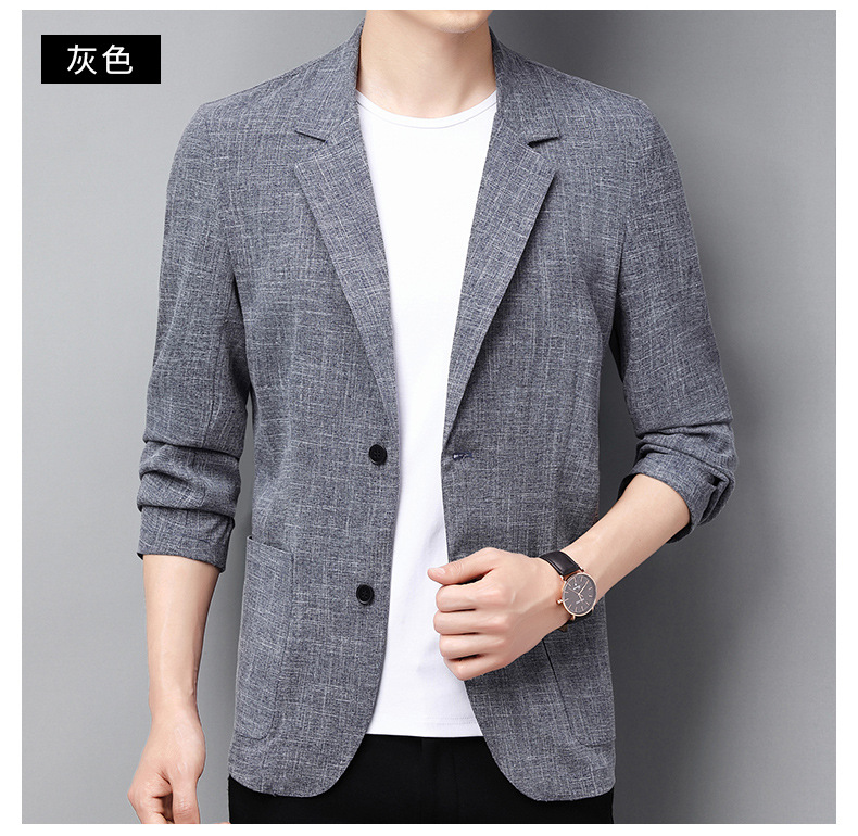 가을 얇은 린넨 캐주얼 작은 정장 남성 단면 재킷 정장 청년 및 중년 느슨한 멀티 포켓 면 및 린넨 재킷
