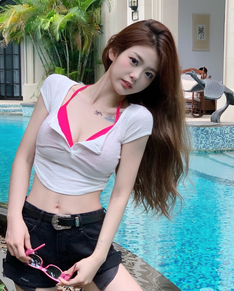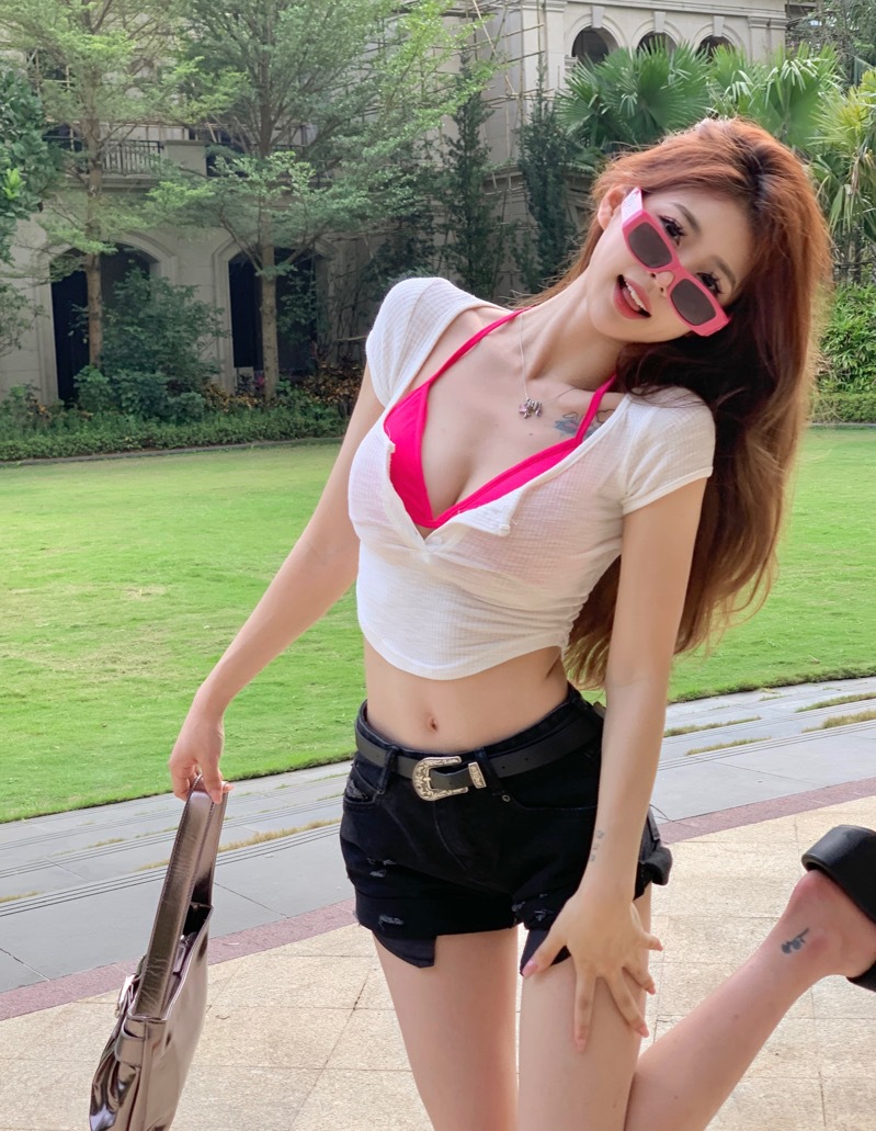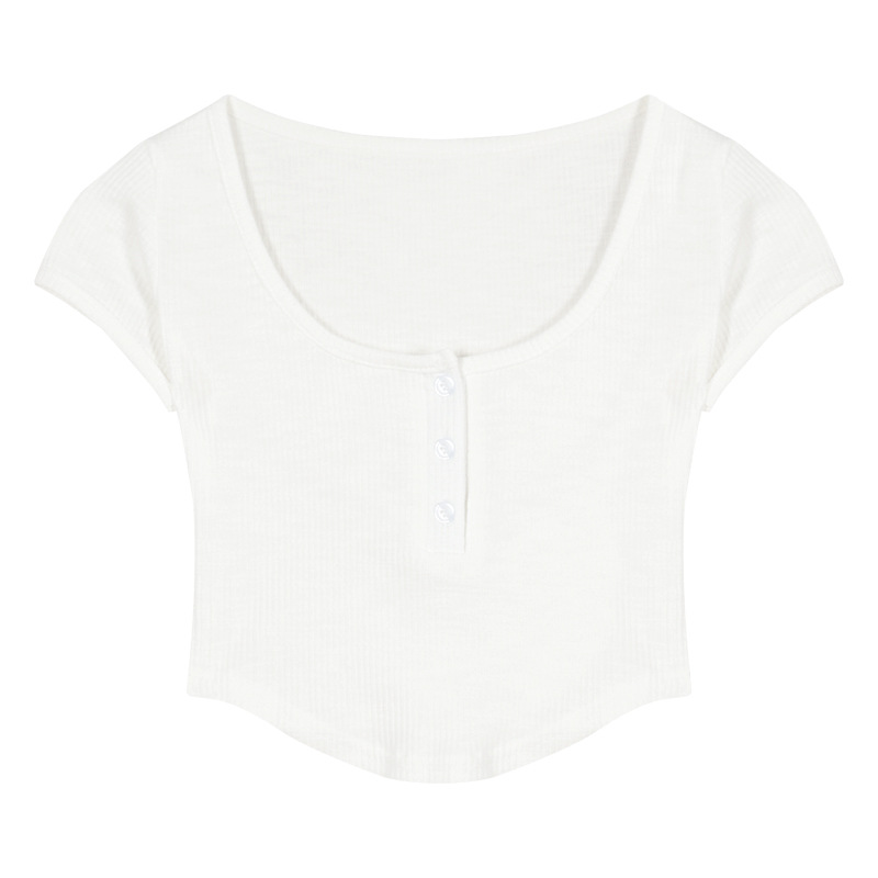 불규칙한 흰색 반팔 티셔츠 여성용 여름 꽉 끼는 섹시한 짧은 슬림 핏 슬리밍 스퀘어 칼라 배꼽 핫 걸탑스토어 가기