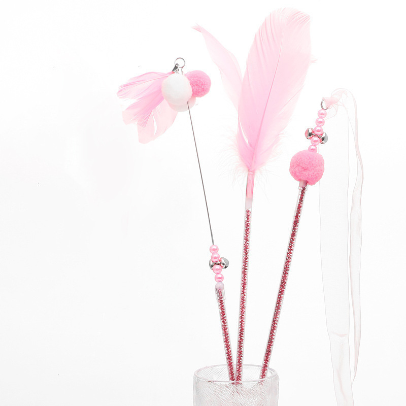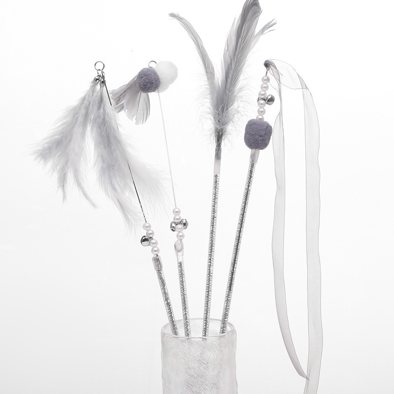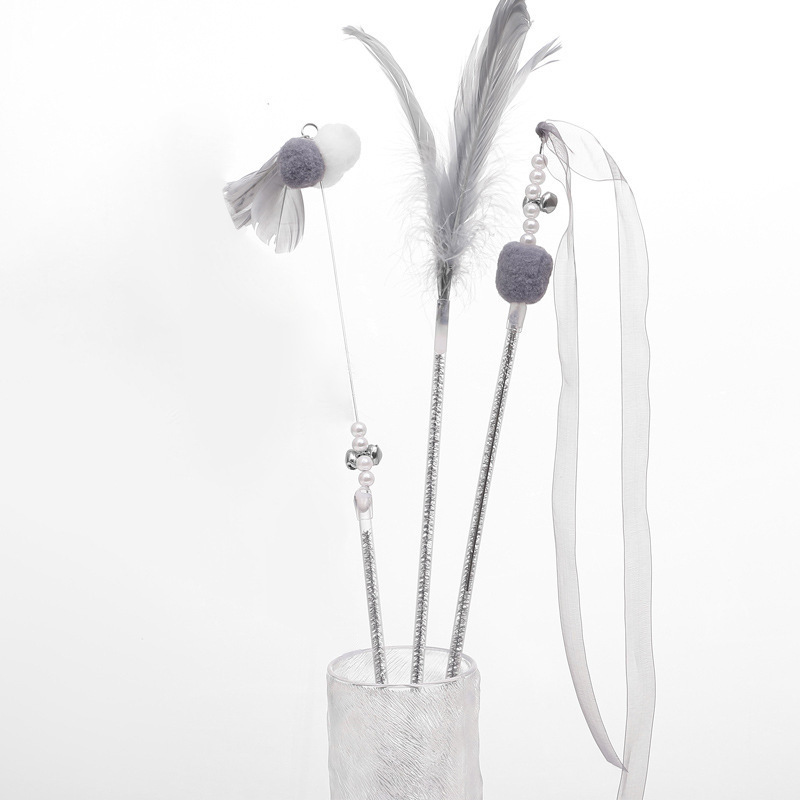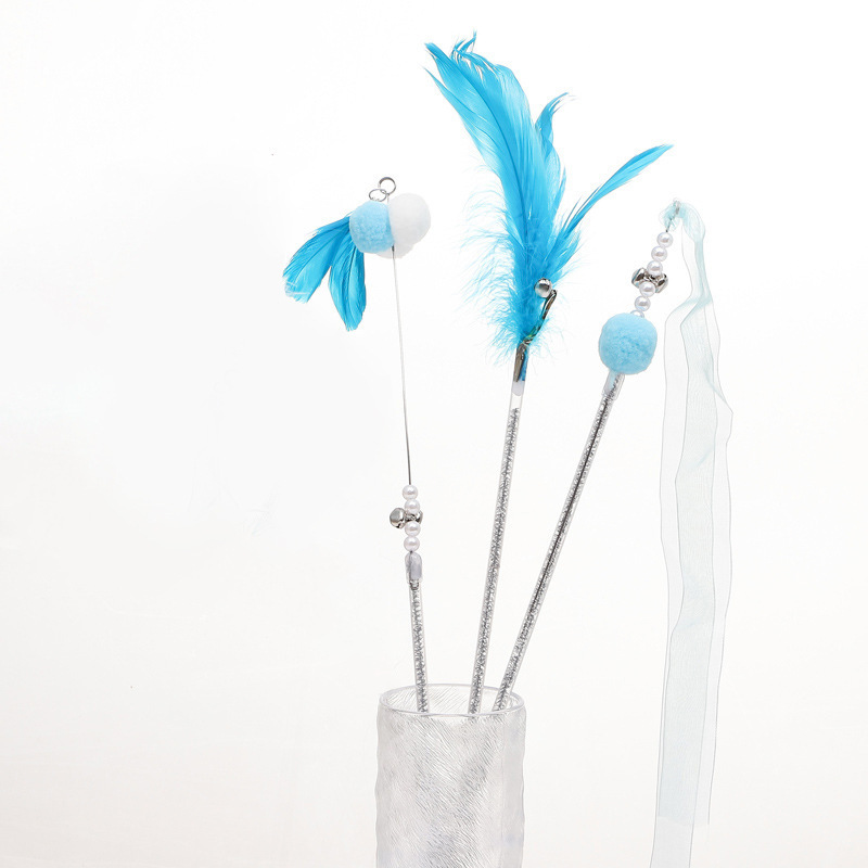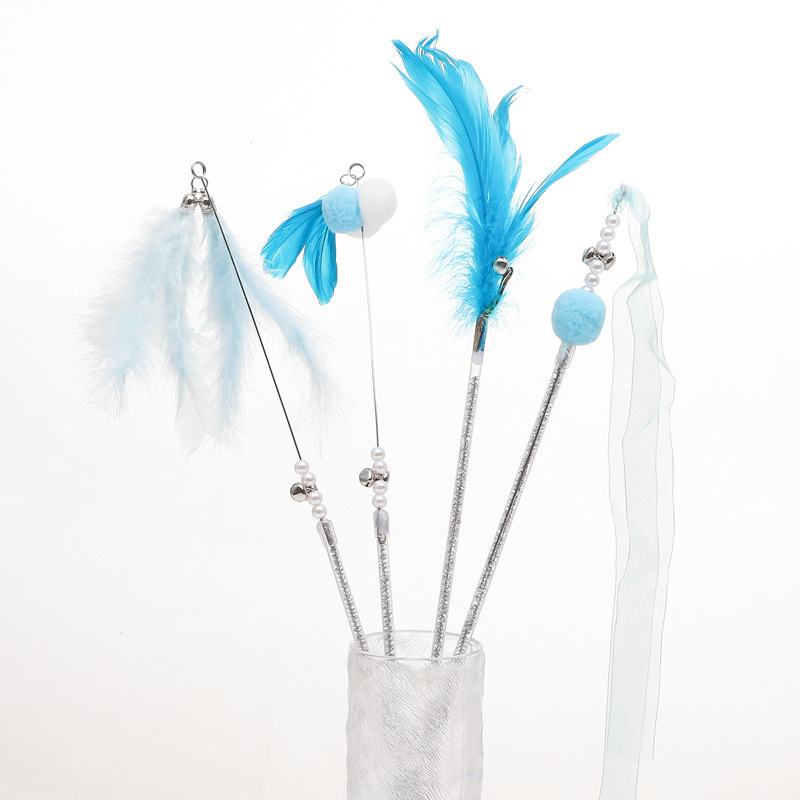 애완 동물 용품 고양이 장난감 고양이 테이 스틱 셀프 플레이 벨 요정 스틱 깃털 셀프 하이 바이트 저항하는 긴 막대 고양이 테이 스틱