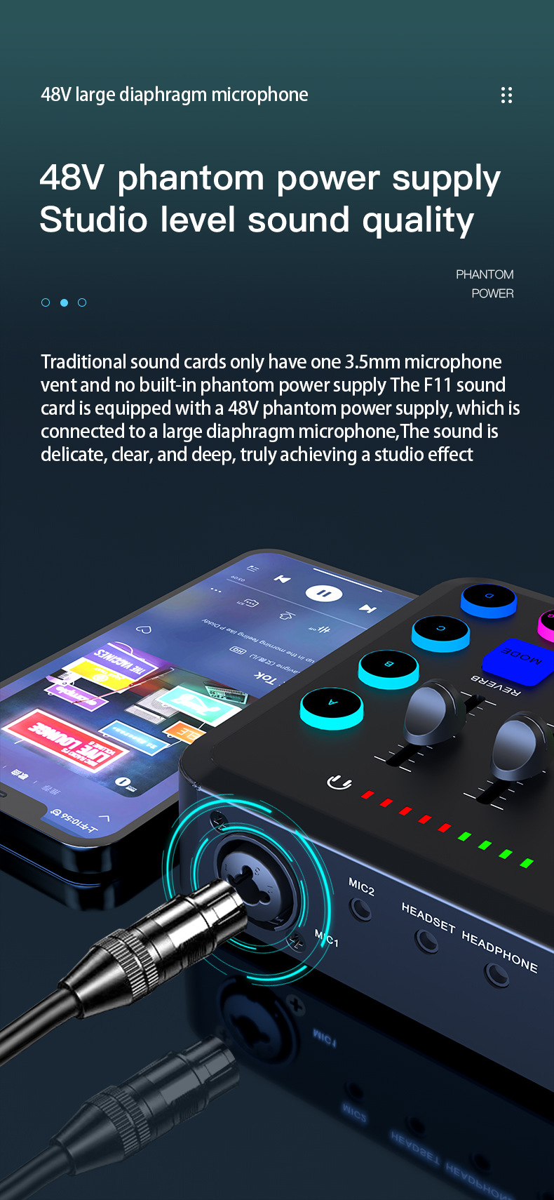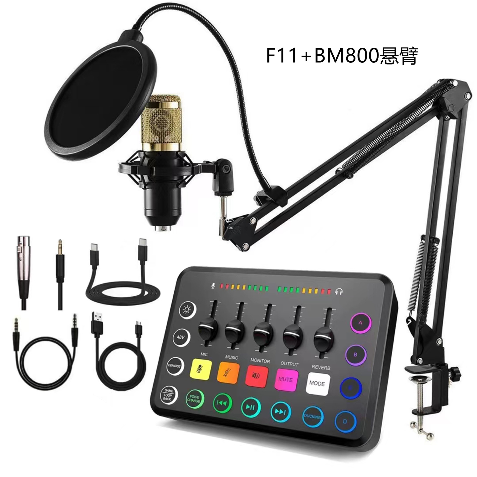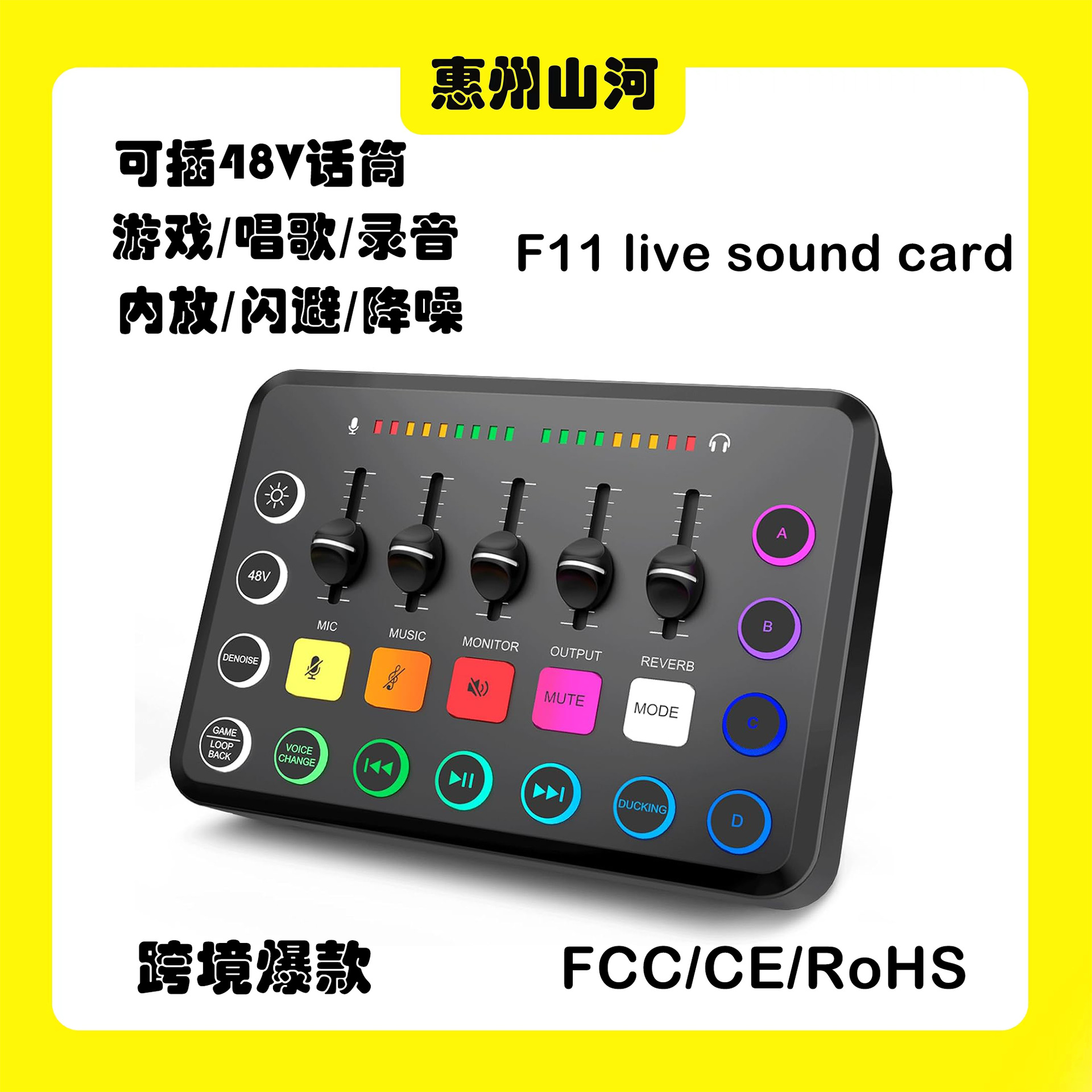 F11 사운드 카드 국경 영어 라이브 방송 사운드 카드 영어 48V 마이크는 사운드 카드 세트 녹음 컴퓨터와 일치 할 수 있습니다.