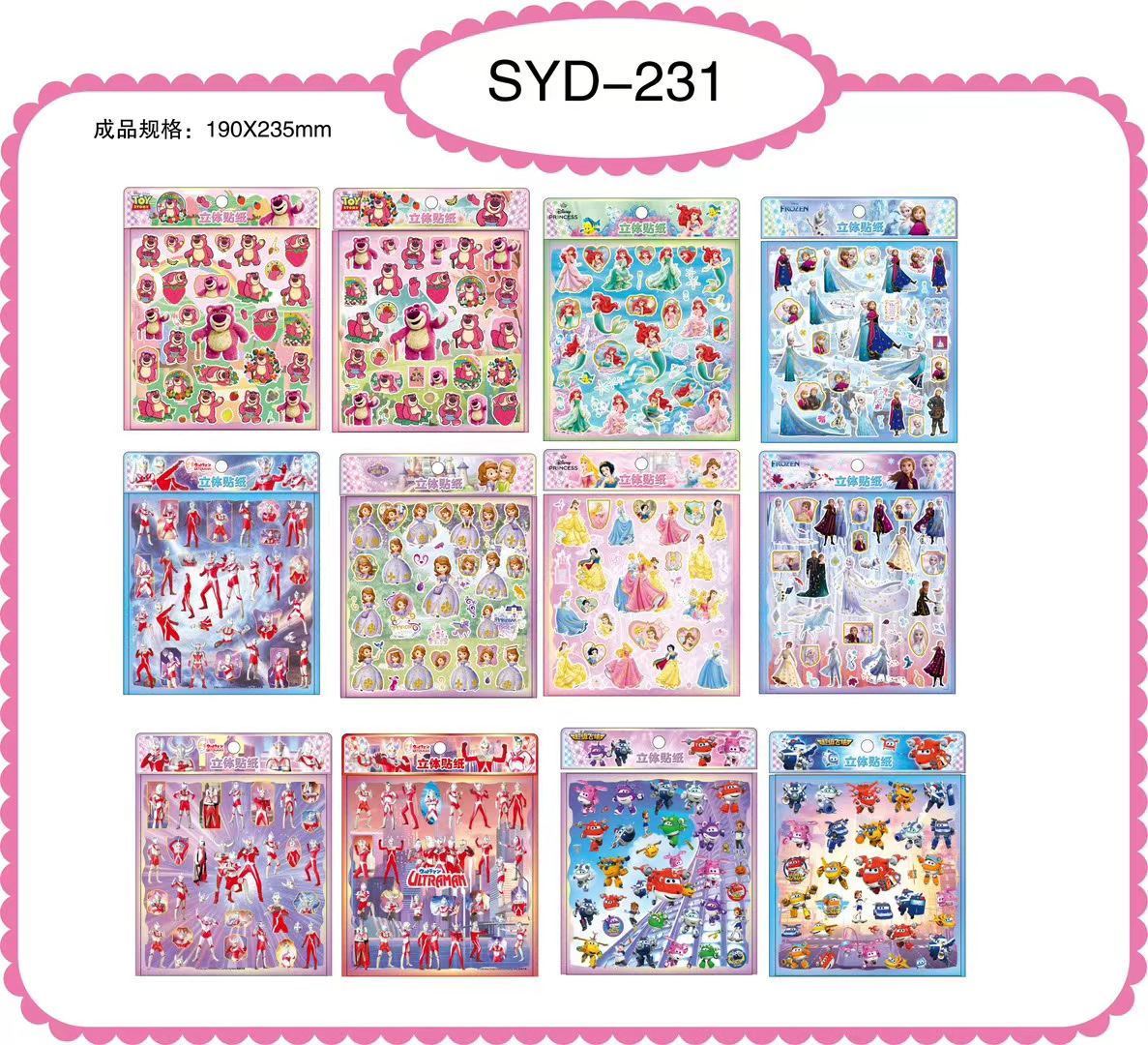 단일 입체 은박 버블 스티커 어린이 만화 공룡 자동차 스티커 그림