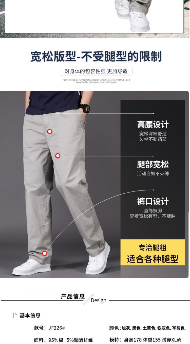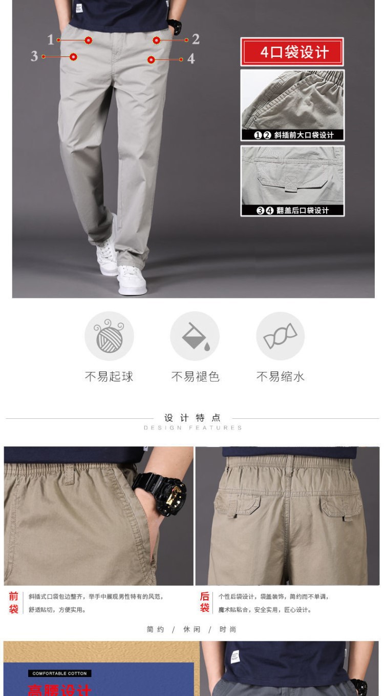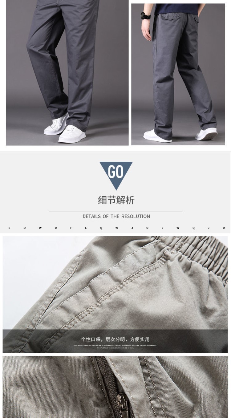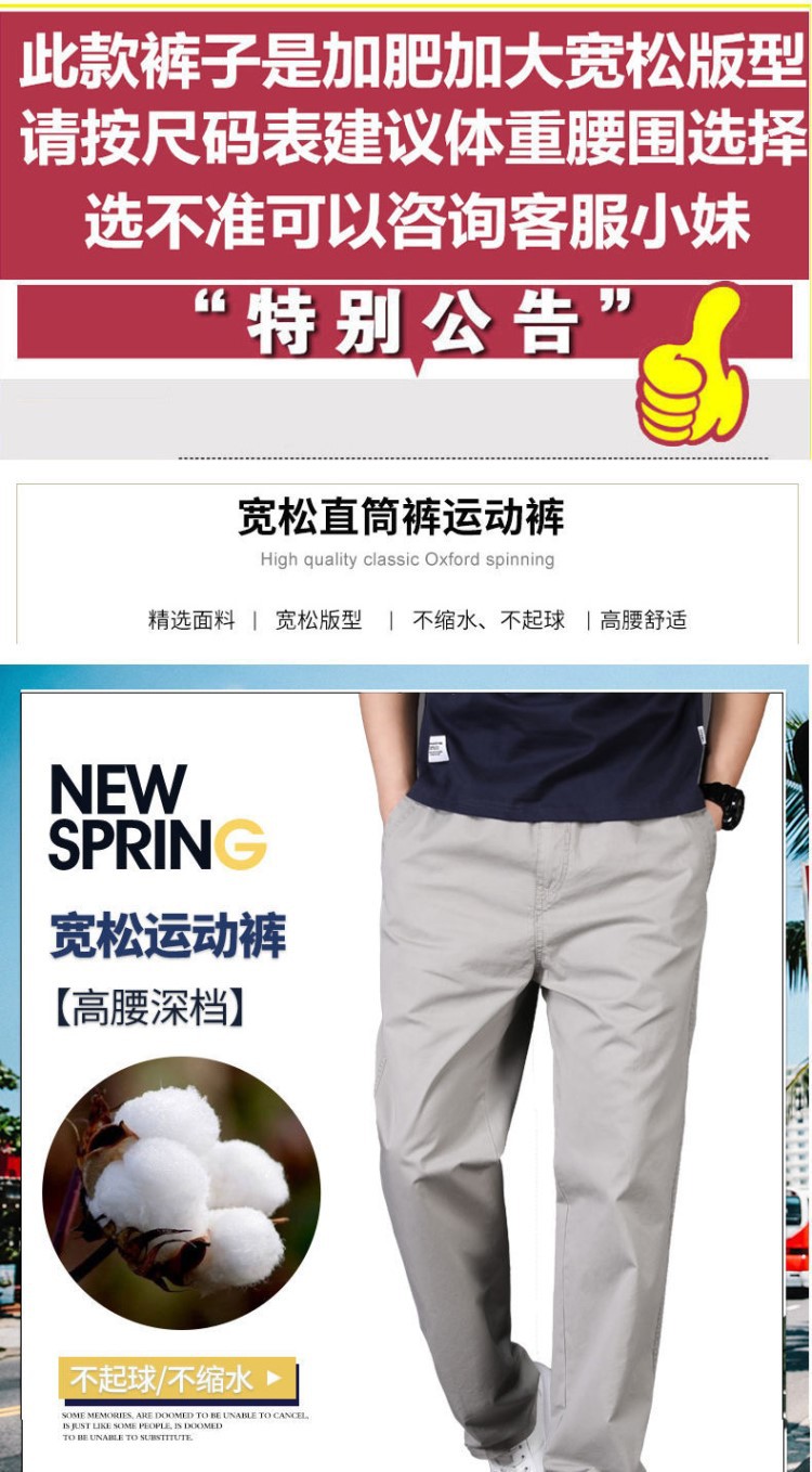 봄과 가을 얇은 청년 및 중년 남성 캐주얼 바지 순면 스트레이트 롱 팬츠 대형 루즈 와이드 레그 오버올스토어 가기