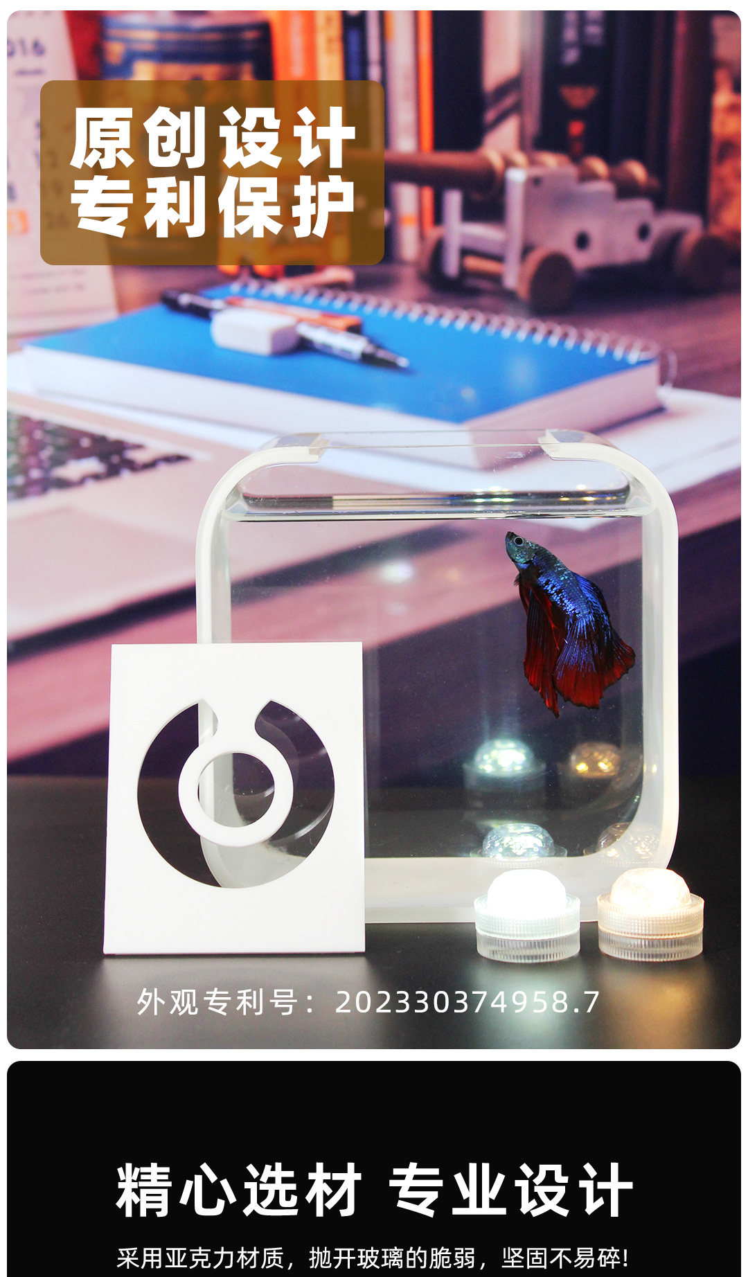 광장 둥근 태국 양동이 물고기 탱크 데스크탑 생태 실린더 마이크로 조경 사무실 미니 디스플레이 실린더 관상용 물고기 창조적 인 실린더