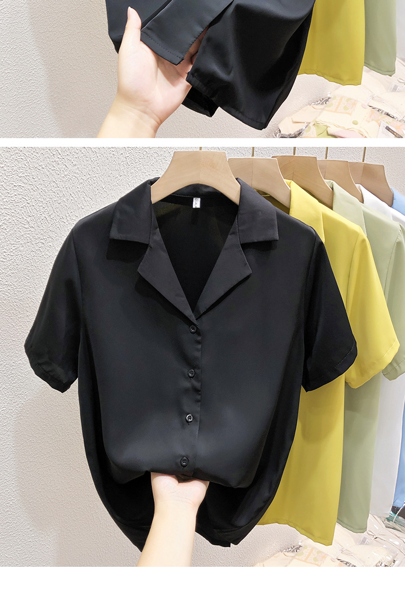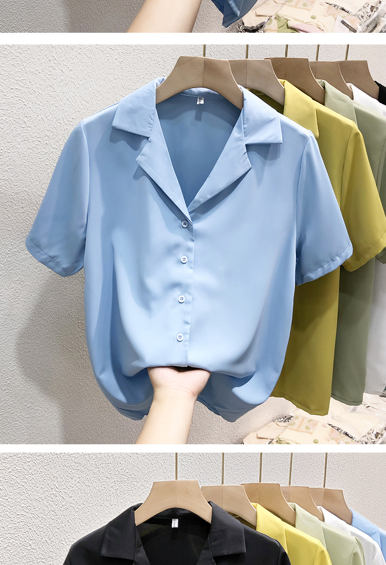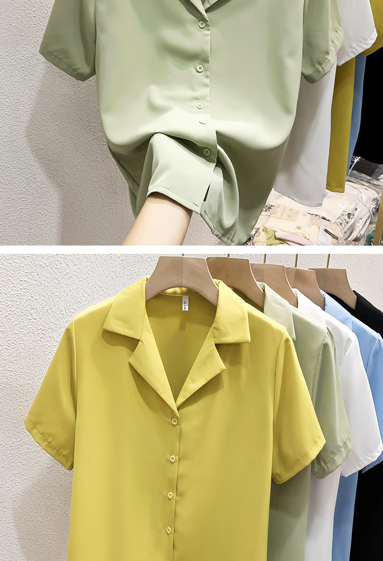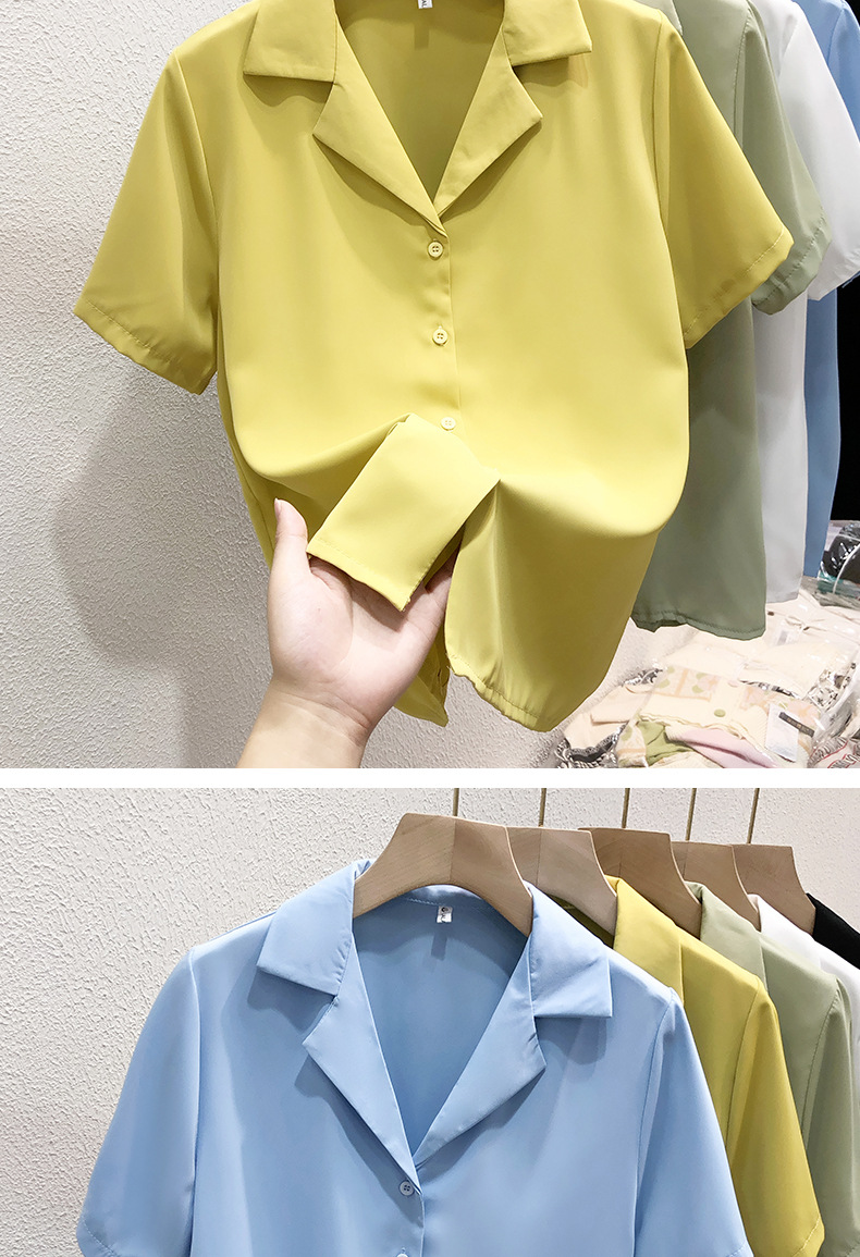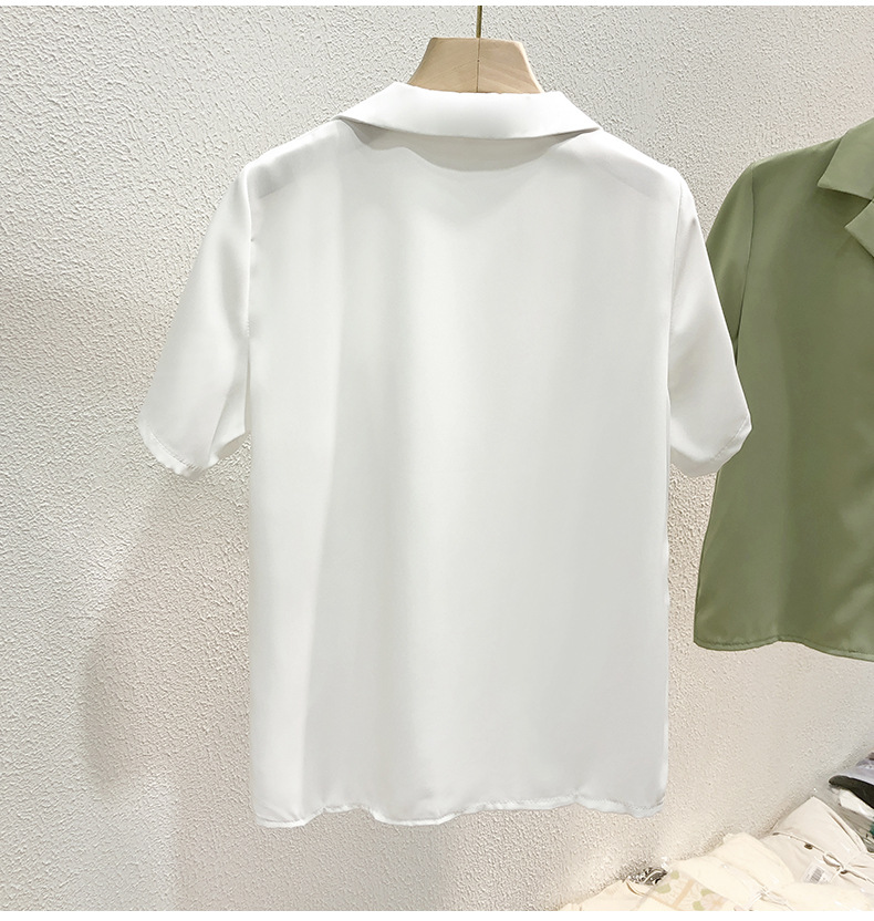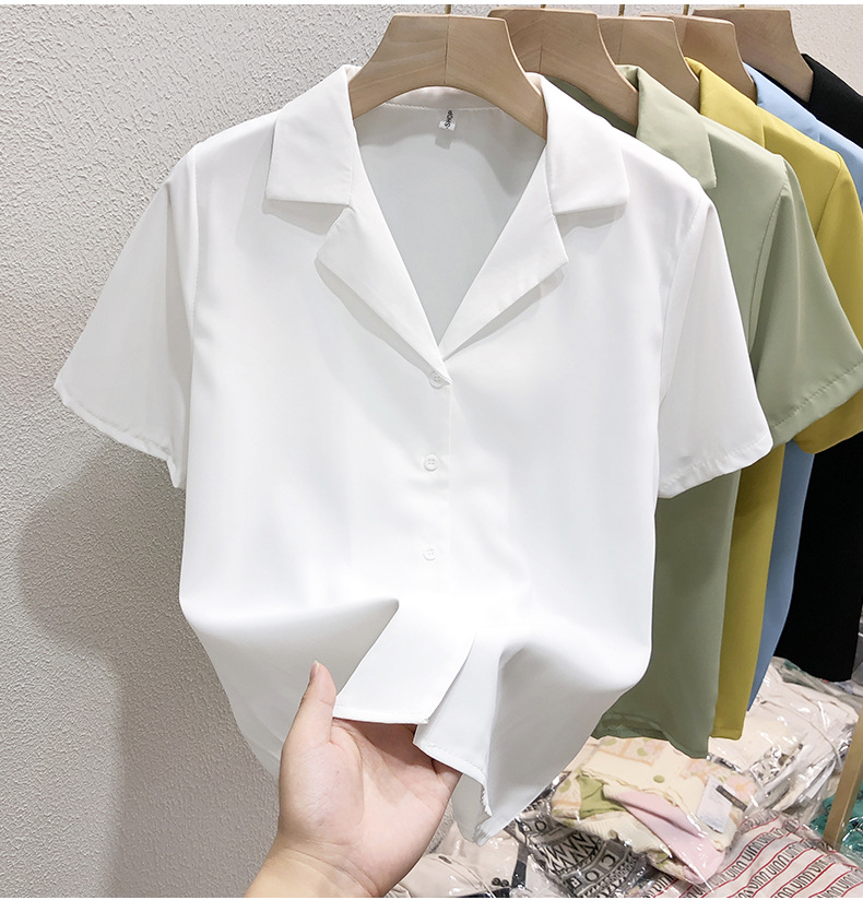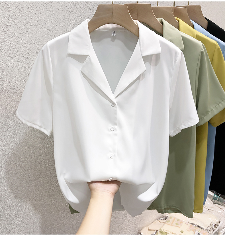 여성 흰색 셔츠 여성용 쉬폰 반팔 셔츠 여름 착용 2023 세트 칼라 인터뷰 전문 셔츠 작은 셔츠스토어 가기