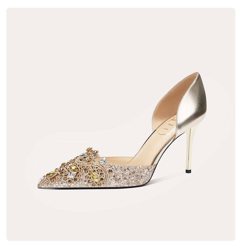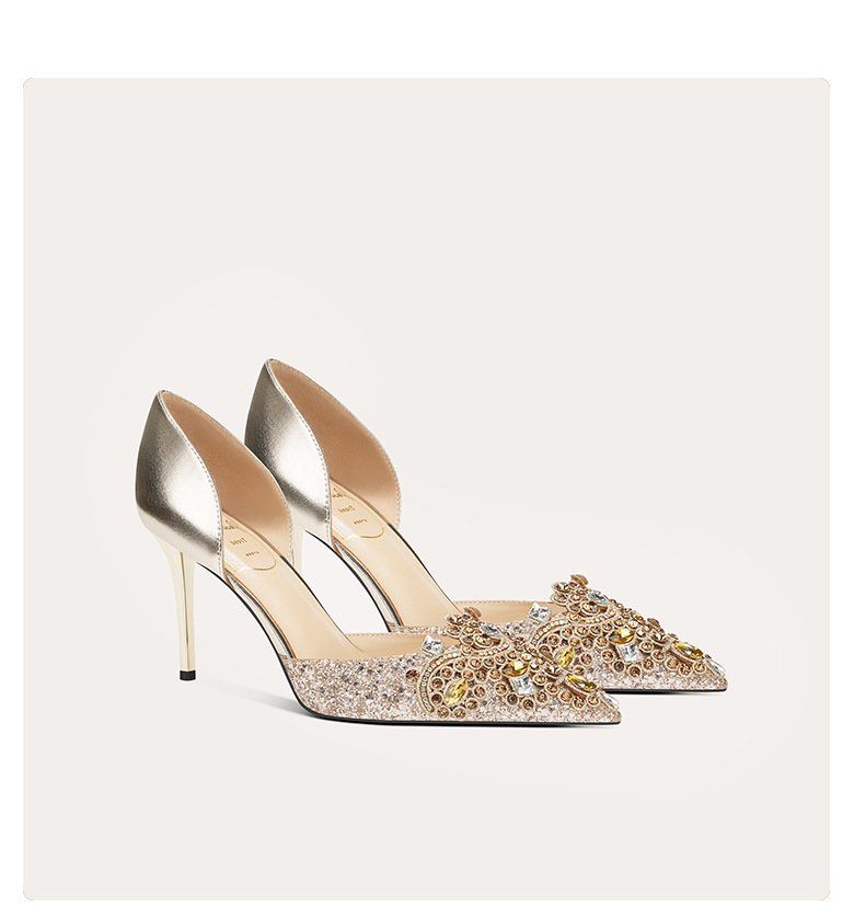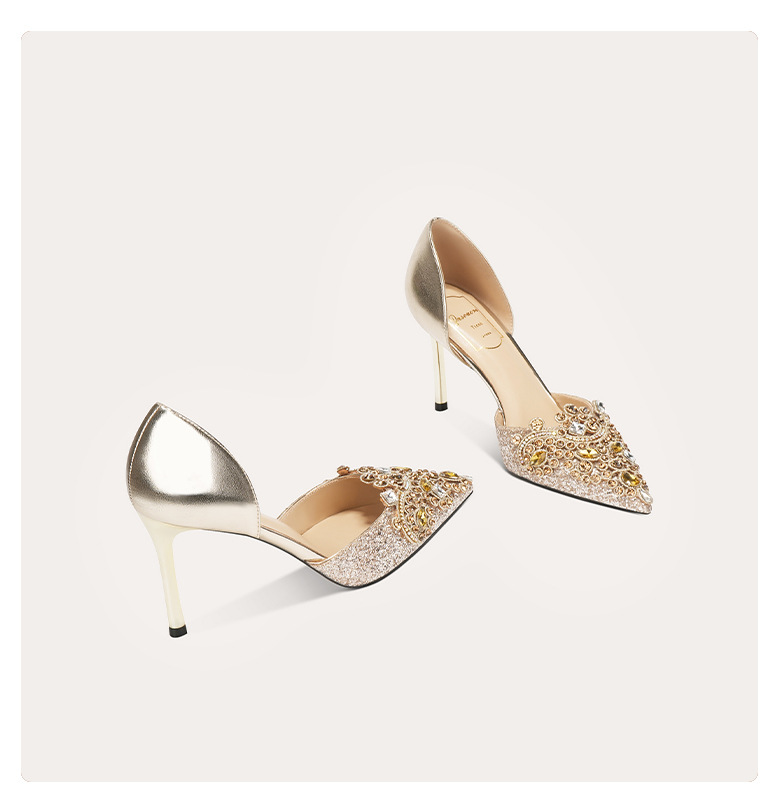 708-A66 섹시한 구두 2024년 신상품 중공 뾰족코 프렌치 양가죽 하이힐 신화 웨딩슈즈스토어 가기