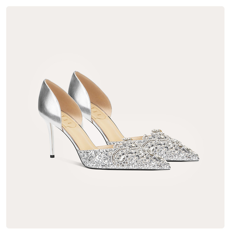 708-A66 섹시한 구두 2024년 신상품 중공 뾰족코 프렌치 양가죽 하이힐 신화 웨딩슈즈