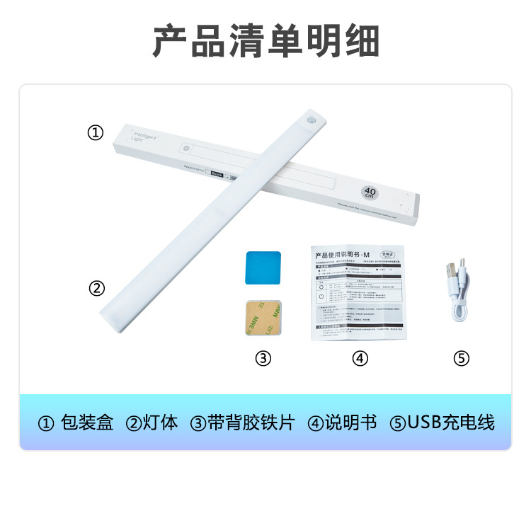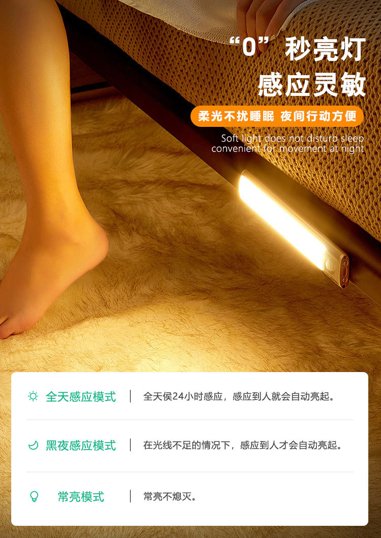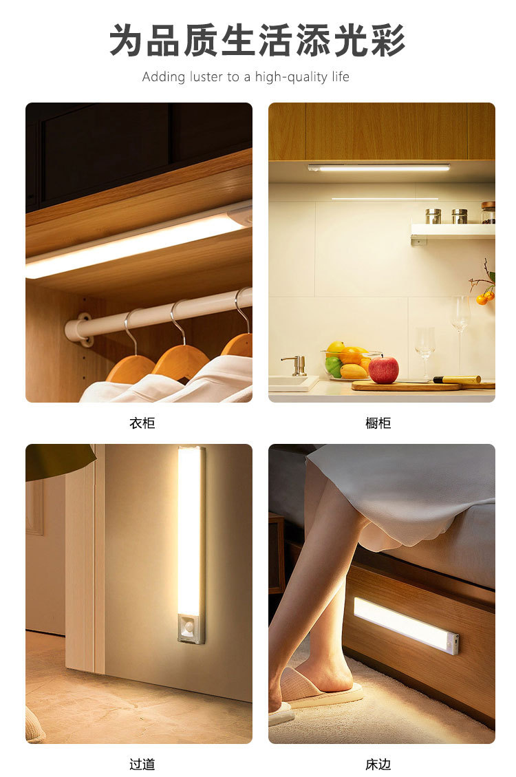 초박형 지능형 인체 유도 LED 캐비닛 스트립 조명 충전식 와인 캐비닛 조명 스트립이 있는 자기 접착식 옷장 조명