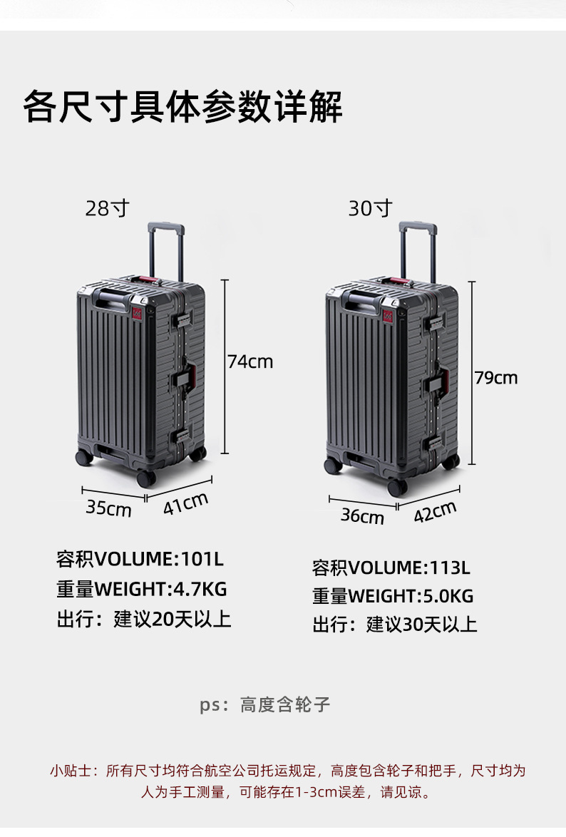 이 대용량 수하물 케이스 여성의 20 인치 탑승 트롤리 케이스 알루미늄 프레임 유니버설 휠 가방 30 인치 비밀번호 수하물스토어 가기