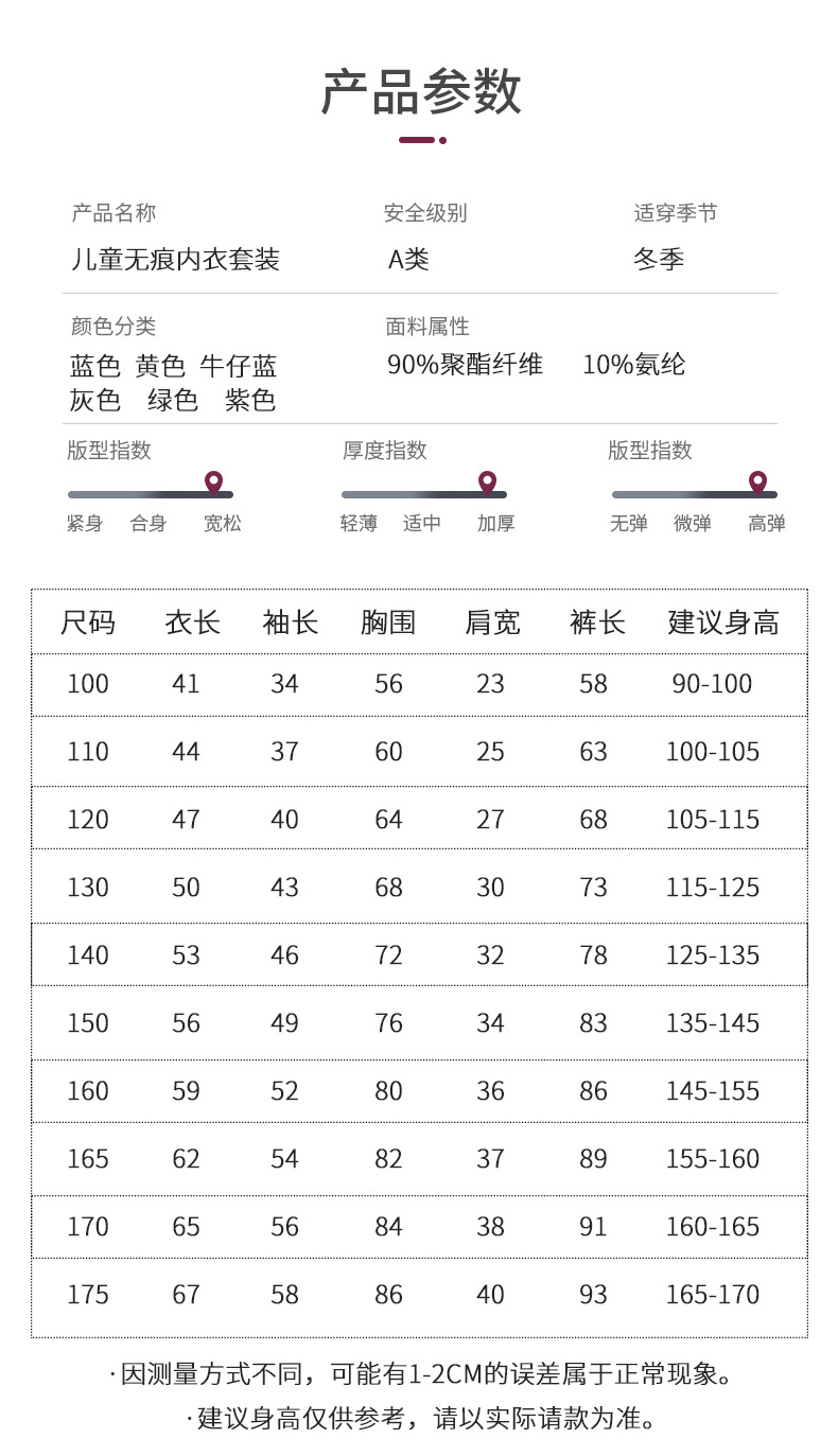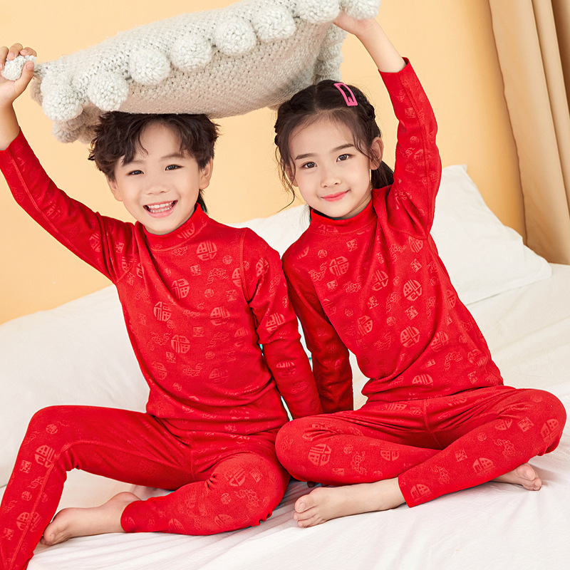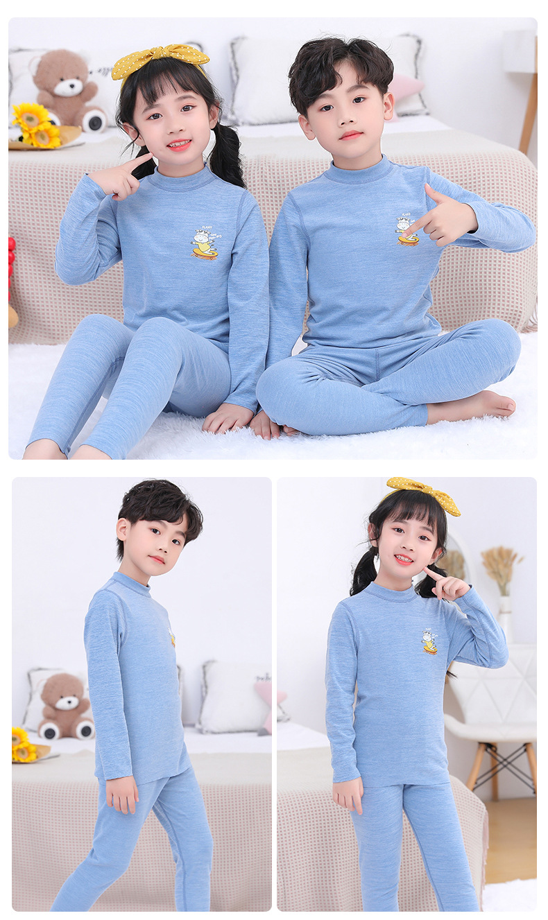 어린이 열 속옷 세트 중간 높은 칼라 방풍 남녀 아기 뼈없는 내부 착용 원활한 잠옷스토어 가기