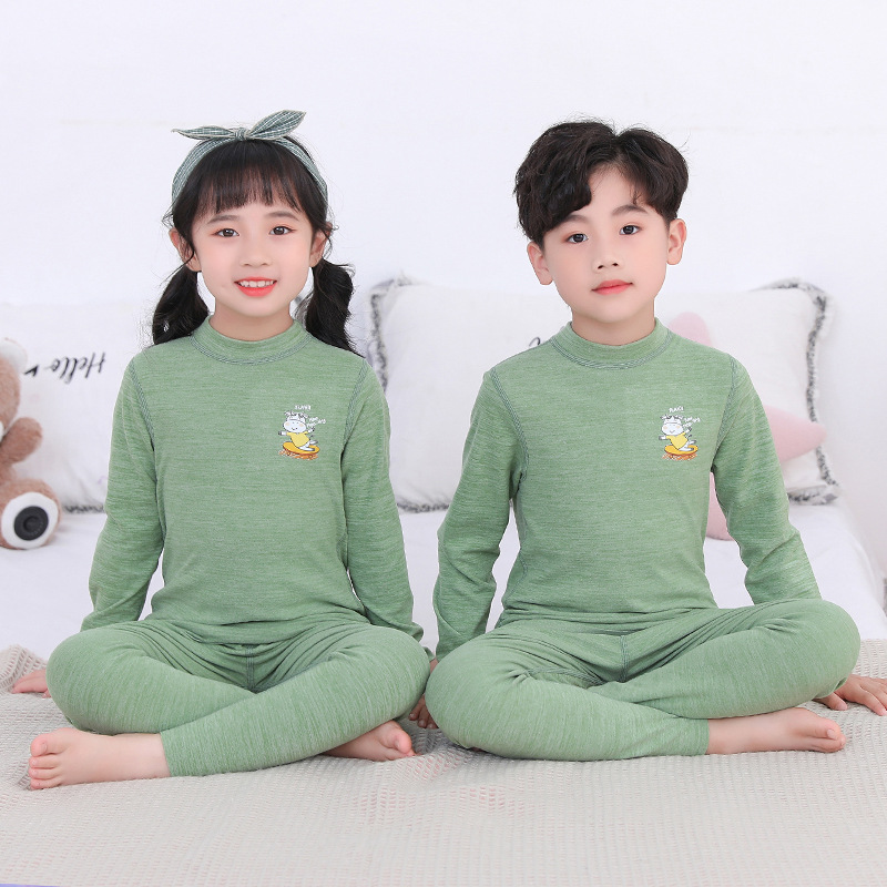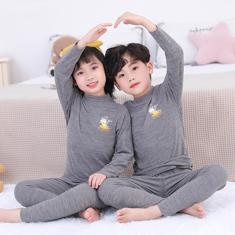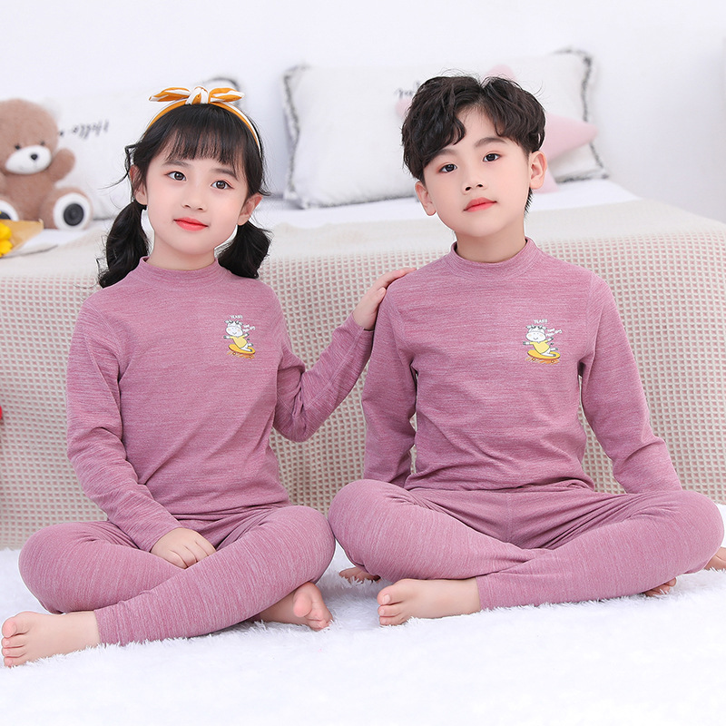 어린이 열 속옷 세트 중간 높은 칼라 방풍 남녀 아기 뼈없는 내부 착용 원활한 잠옷