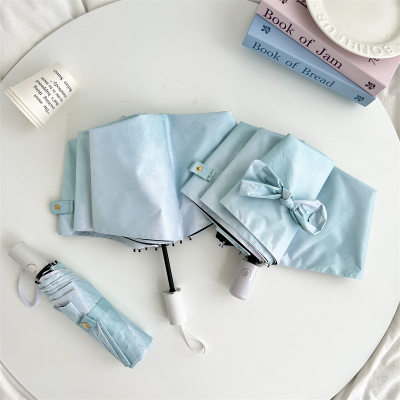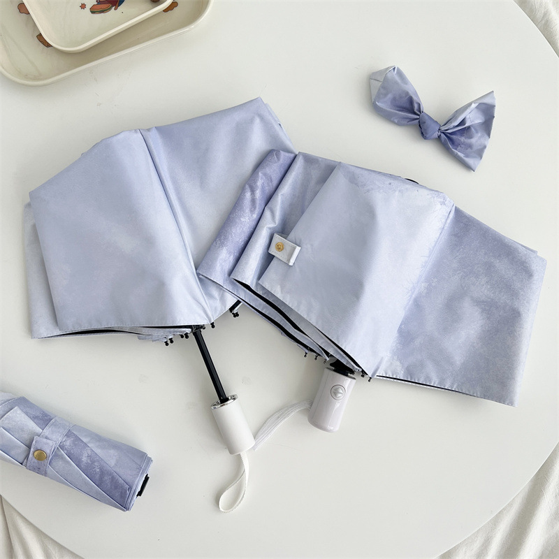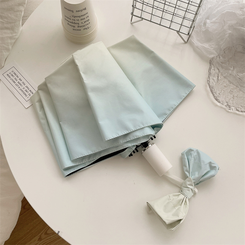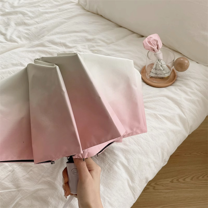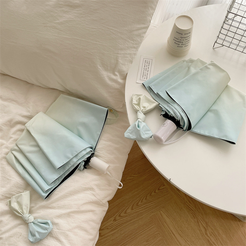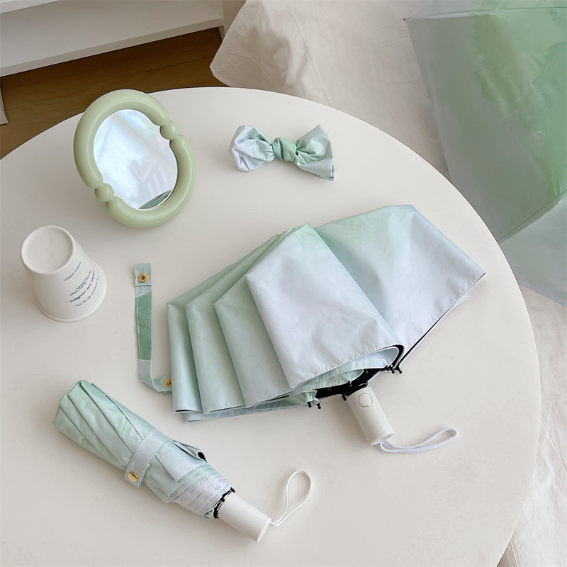 그라디언트 햇살 및 비 이중 사용 여성용 트라이 폴드 블랙 고무 선 스크린 우산 안티-UV 태양 우산 접히는 자동 우산