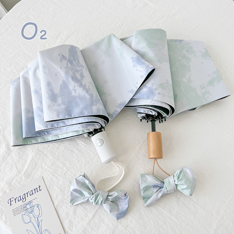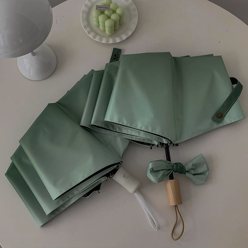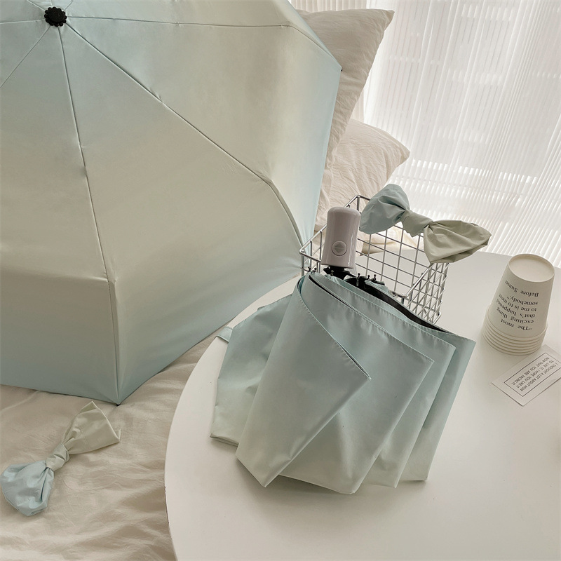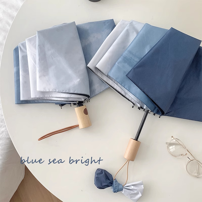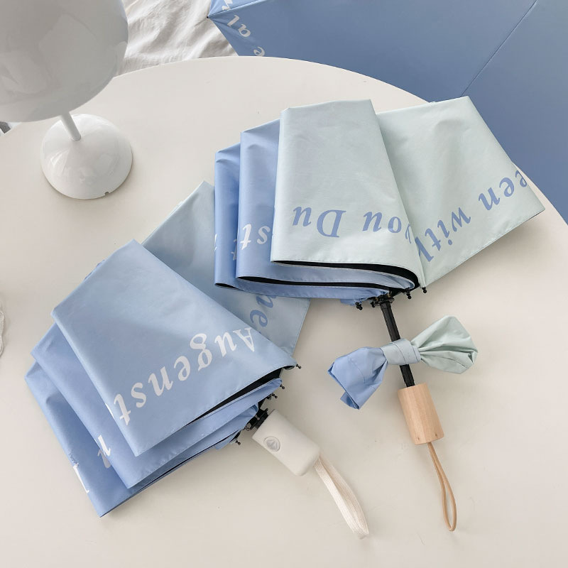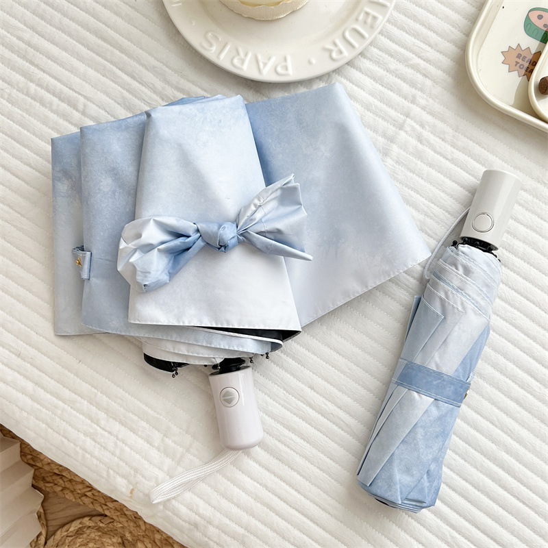 그라디언트 햇살 및 비 이중 사용 여성용 트라이 폴드 블랙 고무 선 스크린 우산 안티-UV 태양 우산 접히는 자동 우산