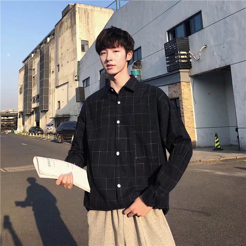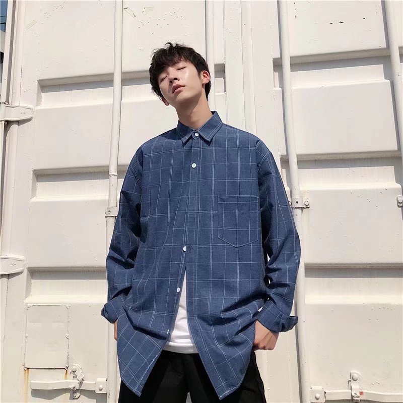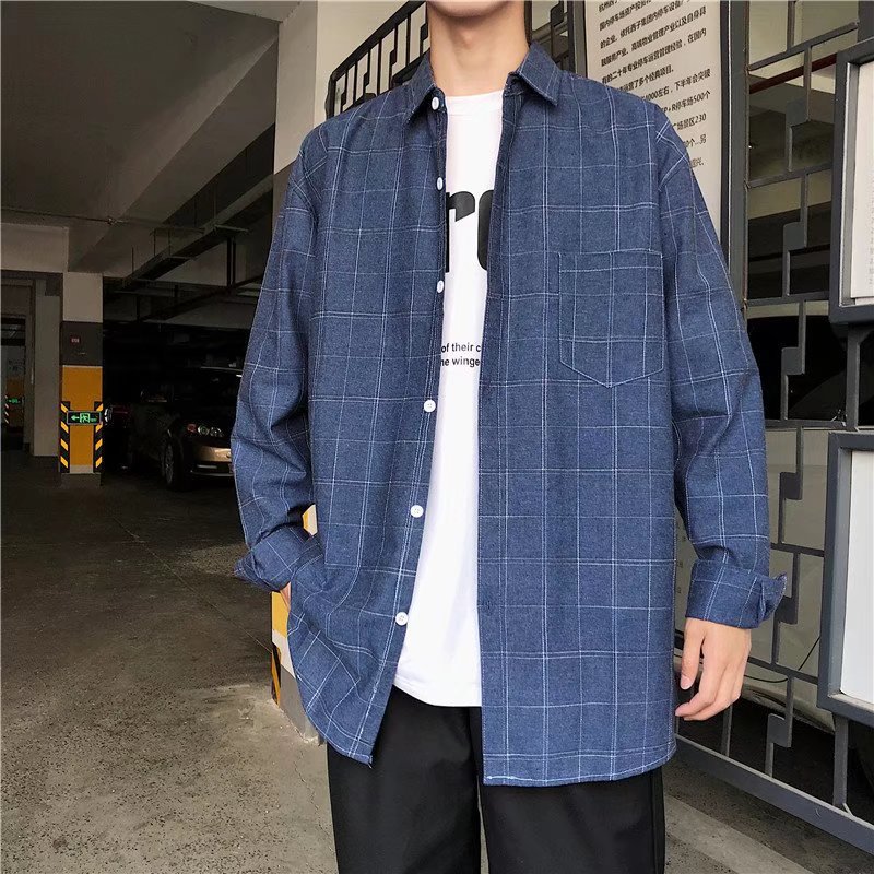 홍콩 스타일의 복고풍 긴 소매 체크 무늬 셔츠 남성용 일본 스타일의 트렌디 한 느슨한 캐주얼 커플 셔츠 잘 생긴 올 매치 셔츠스토어 가기