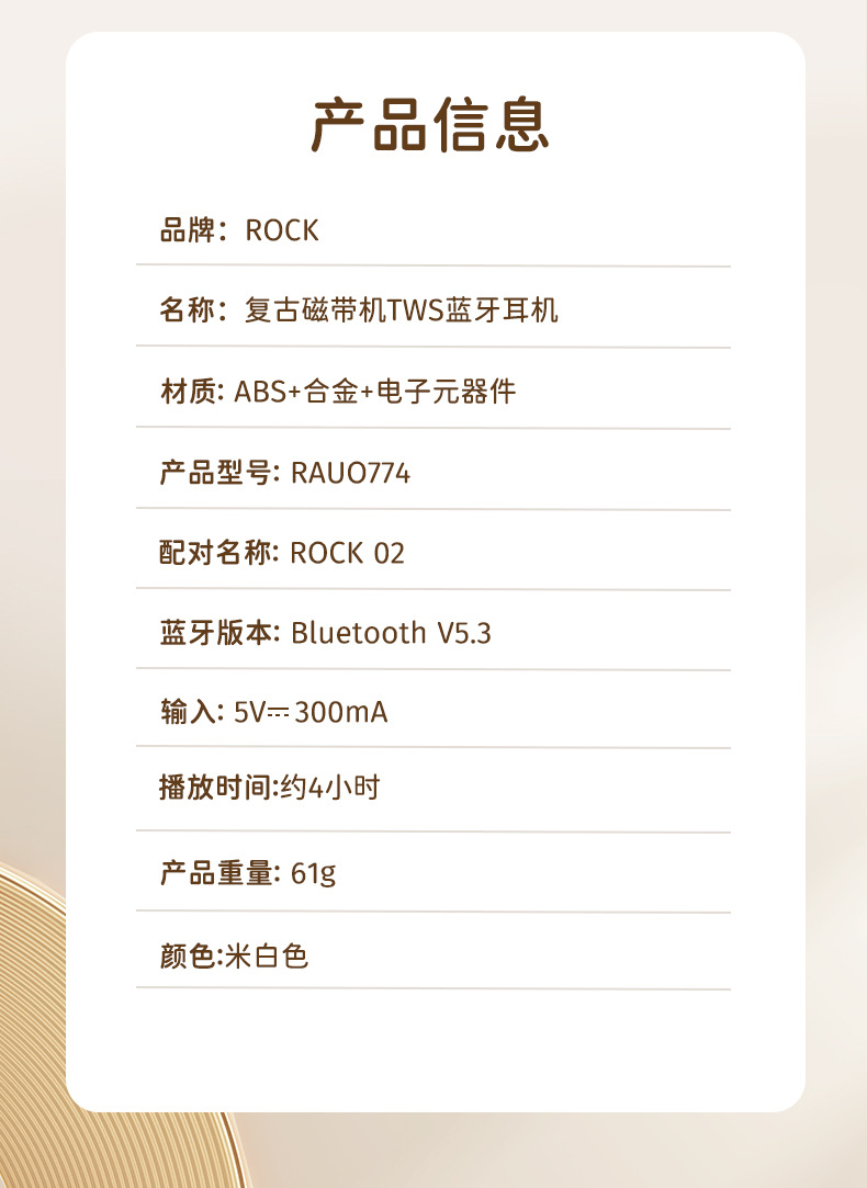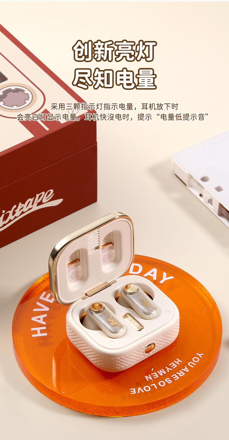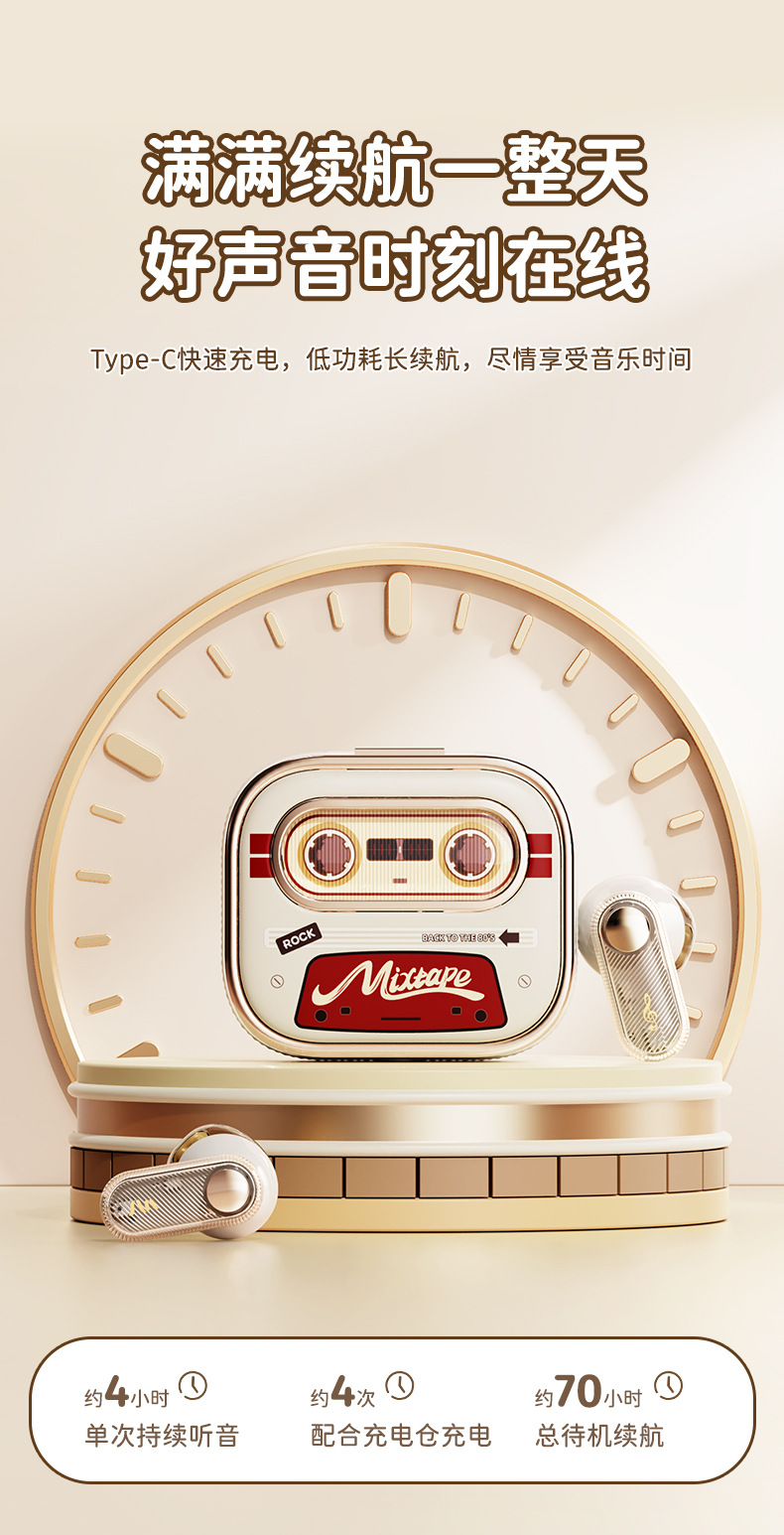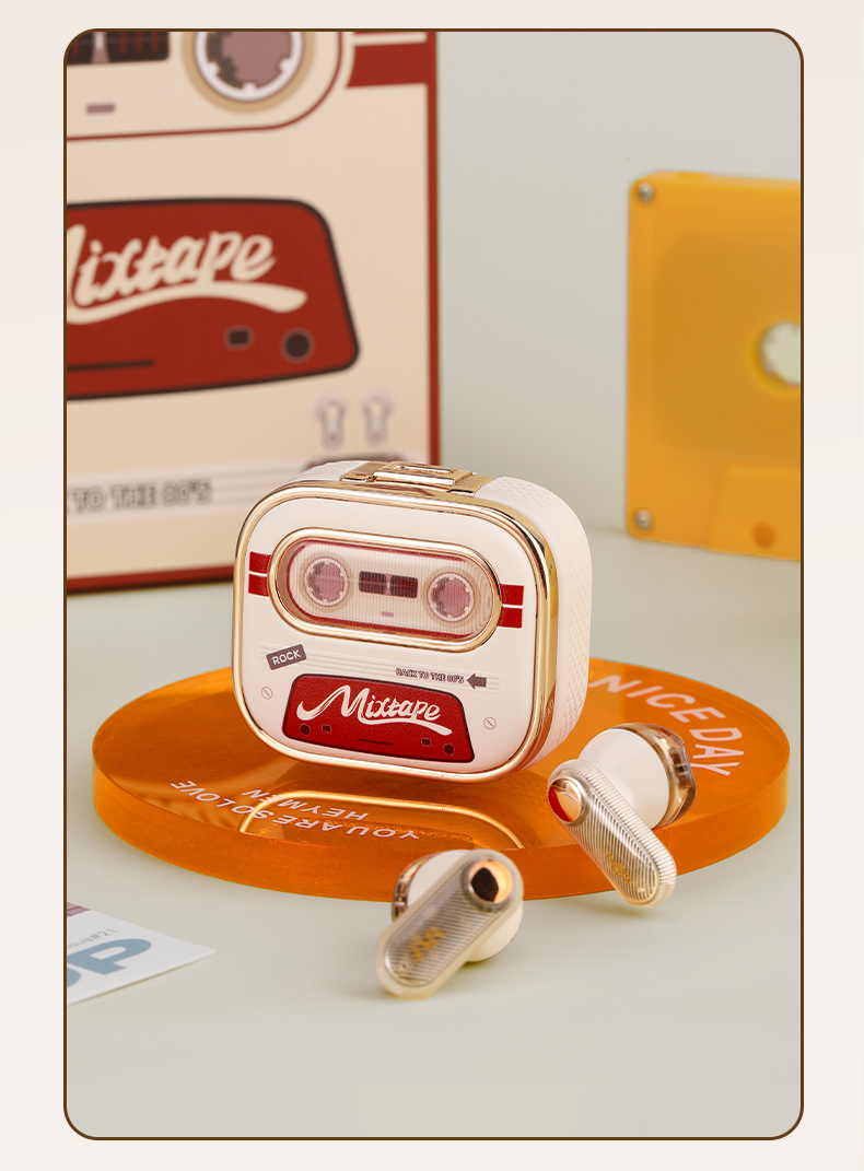 Rock 새로운 레트로 테이프 무선 블루투스 헤드셋 스테레오 TWS 스포츠 헤드셋 세미 인 이어 하이 룩 적합