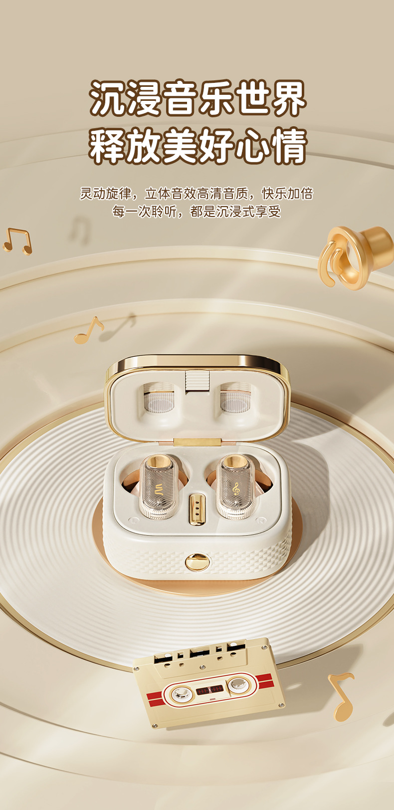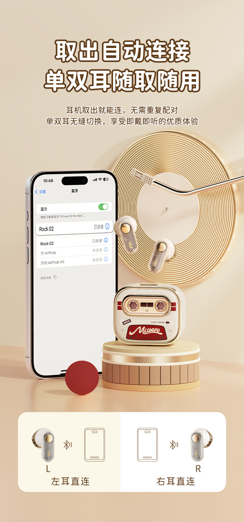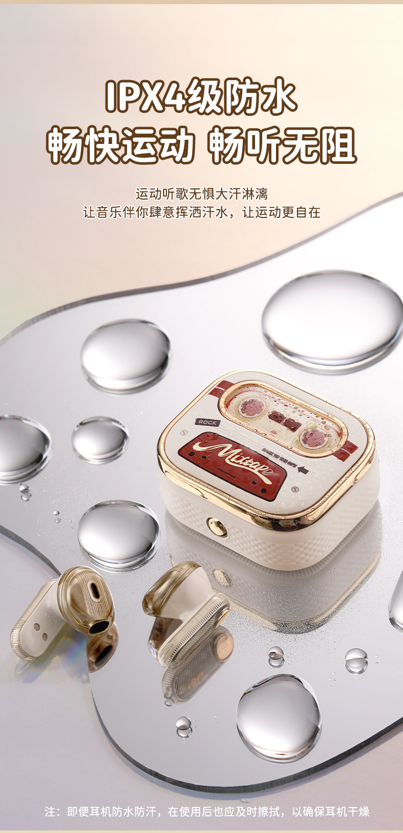 Rock 새로운 레트로 테이프 무선 블루투스 헤드셋 스테레오 TWS 스포츠 헤드셋 세미 인 이어 하이 룩 적합