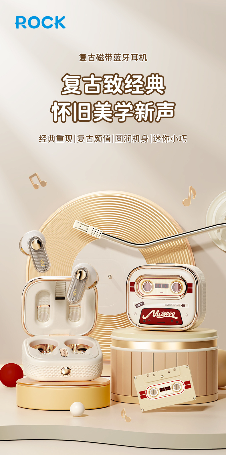 Rock 새로운 레트로 테이프 무선 블루투스 헤드셋 스테레오 TWS 스포츠 헤드셋 세미 인 이어 하이 룩 적합스토어 가기