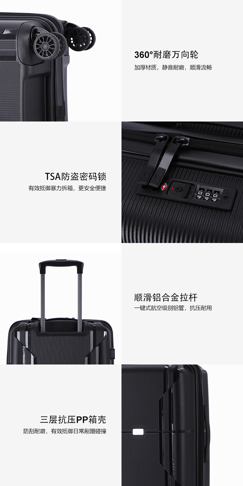 국경 간 패션 가방 높은 캐주얼 블랙 도난 방지 스크래치 PP 3 피스 트롤리 케이스 수하물