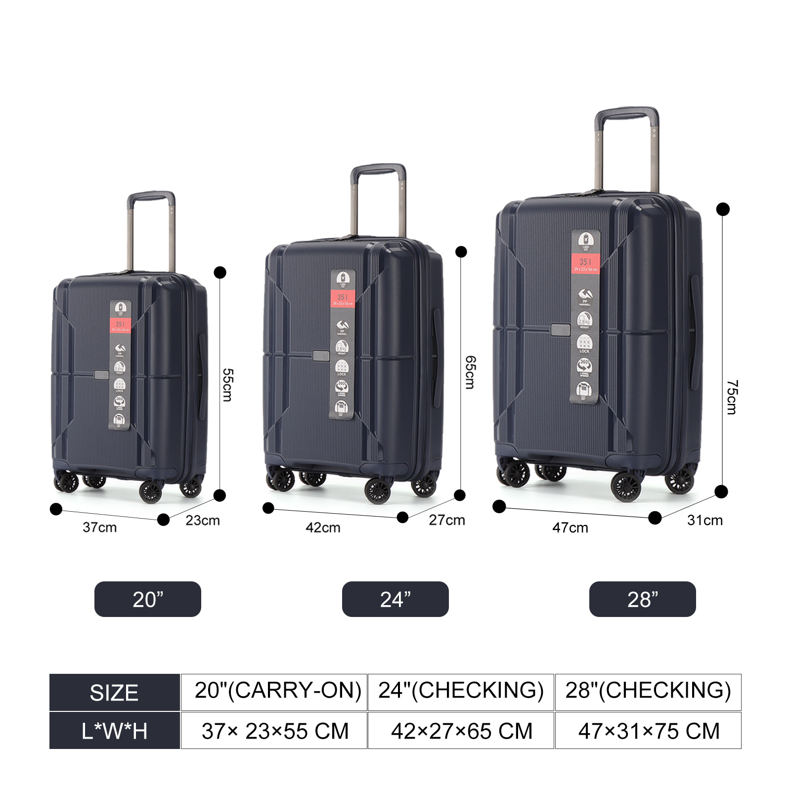 국경 간 패션 가방 높은 캐주얼 블랙 도난 방지 스크래치 PP 3 피스 트롤리 케이스 수하물스토어 가기