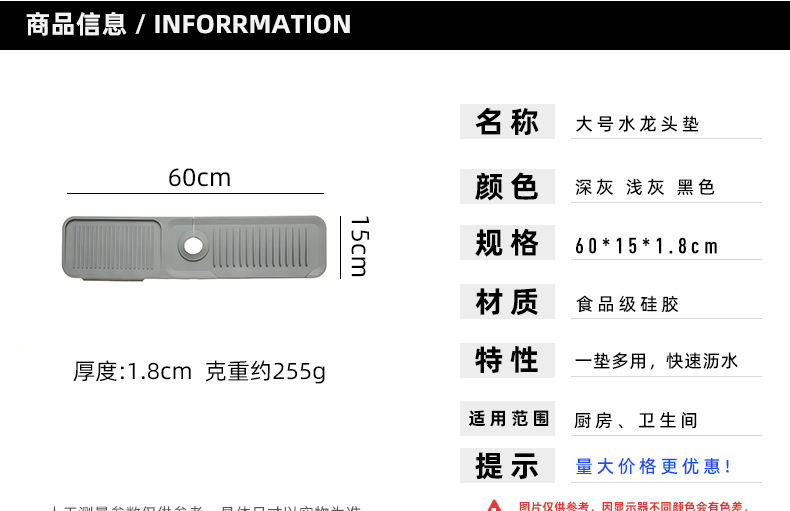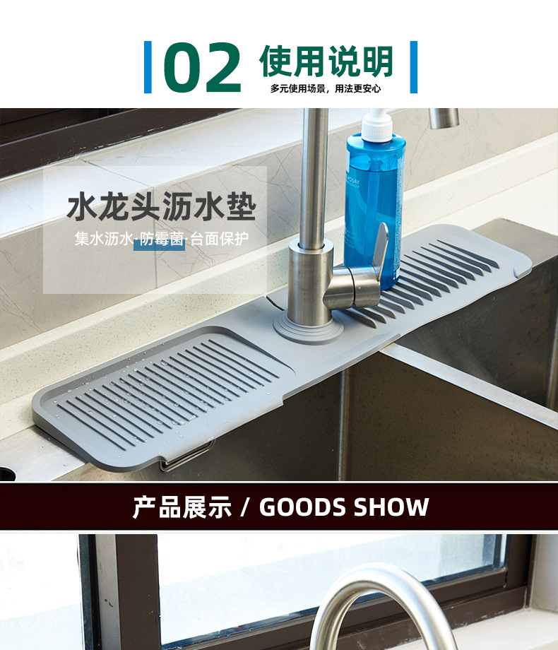 주방 대형 배수 매트 욕실 보관 매트 스플래쉬 방지 수도꼭지 배수구 실리콘 매트 배수 매트 비누 매트스토어 가기