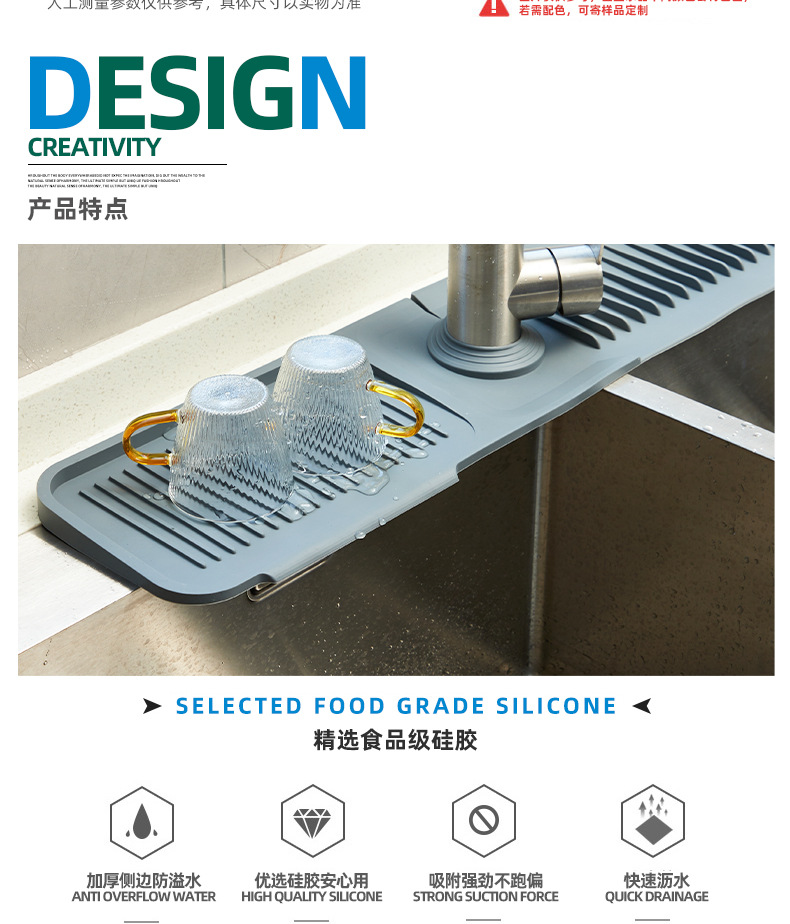 주방 대형 배수 매트 욕실 보관 매트 스플래쉬 방지 수도꼭지 배수구 실리콘 매트 배수 매트 비누 매트