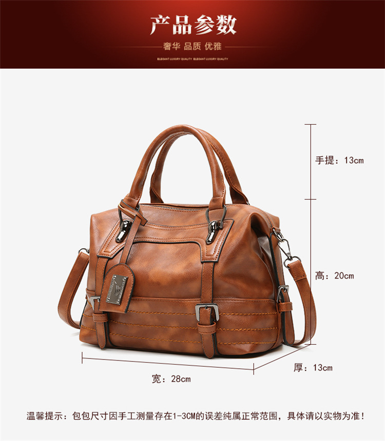대용량 가죽 섬유 가방 국경 왁스 가죽 보스턴 가방 여성 가방 핸드백 단일 어깨 크로스 바디 백
