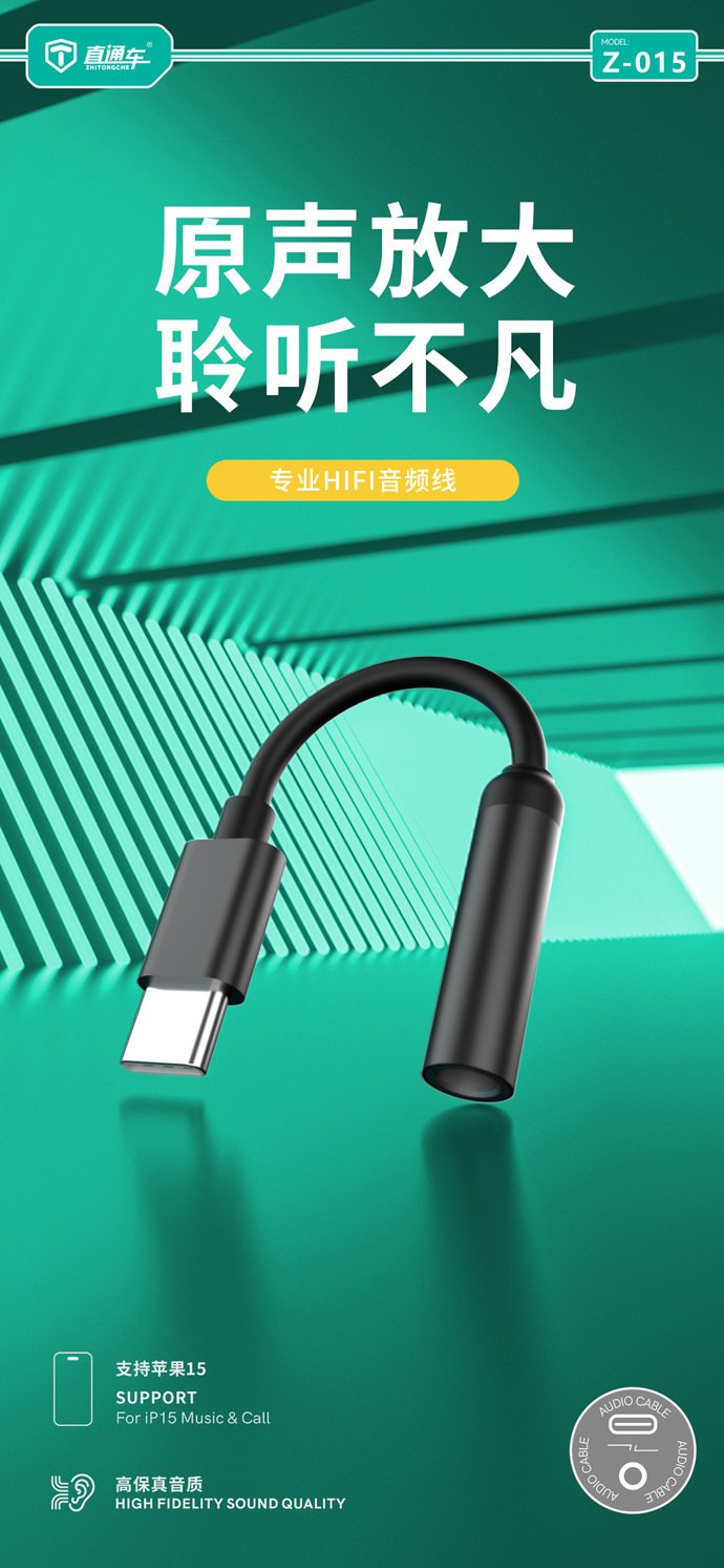 직접 연결 오디오 어댑터 Type-C에서 3.5mm 이어폰 변환기 완전 호환 애플 15~16용