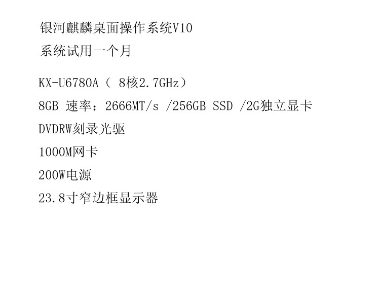• Zhaoxin (U6780A 8코어 2.7GHz) 8G/512G/통합/ 23.8inch 광학 드라이브 없음