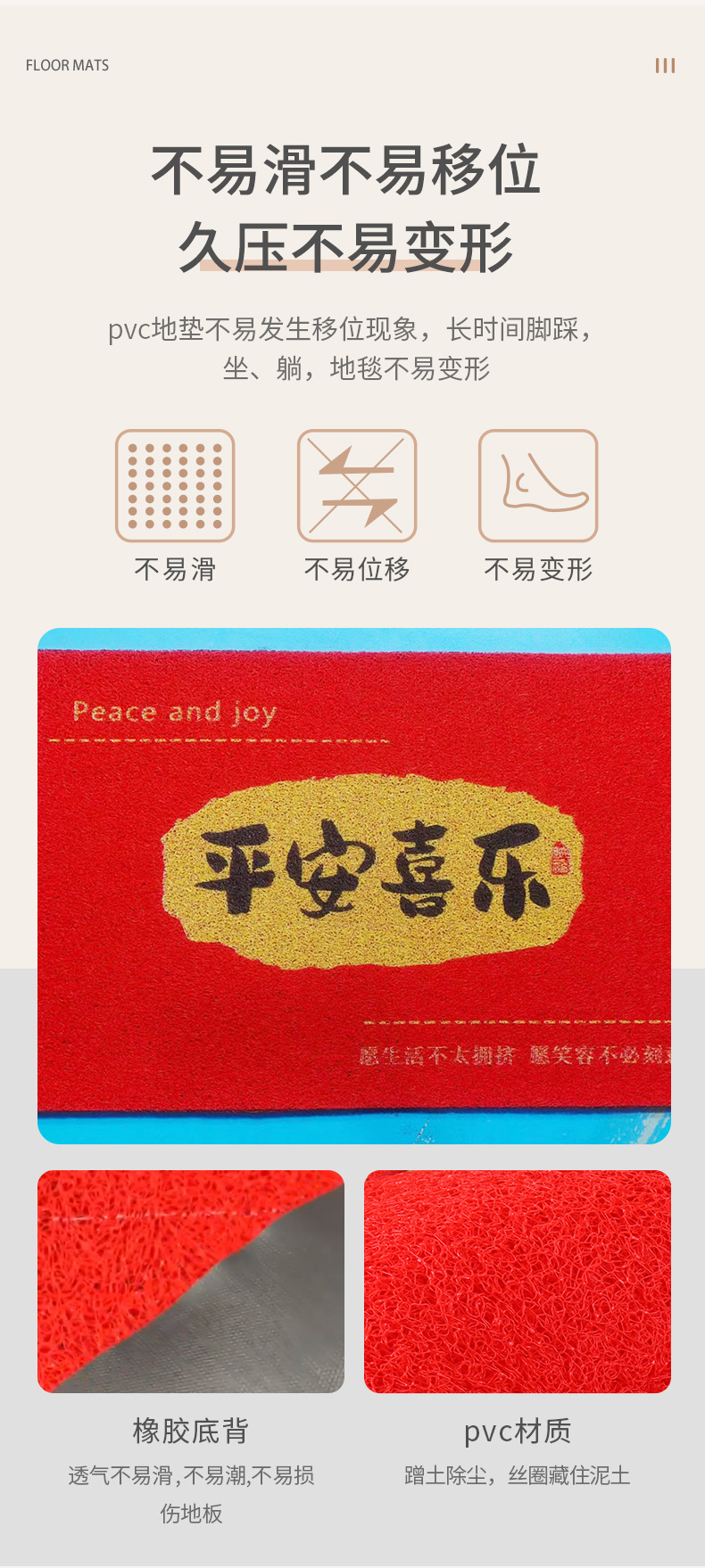 맞춤형 PVC 와이어 링 카펫 새해 축제 입구 문 입구 카펫 세척 가능 방수 미끄럼 방지 홈 바닥 매트