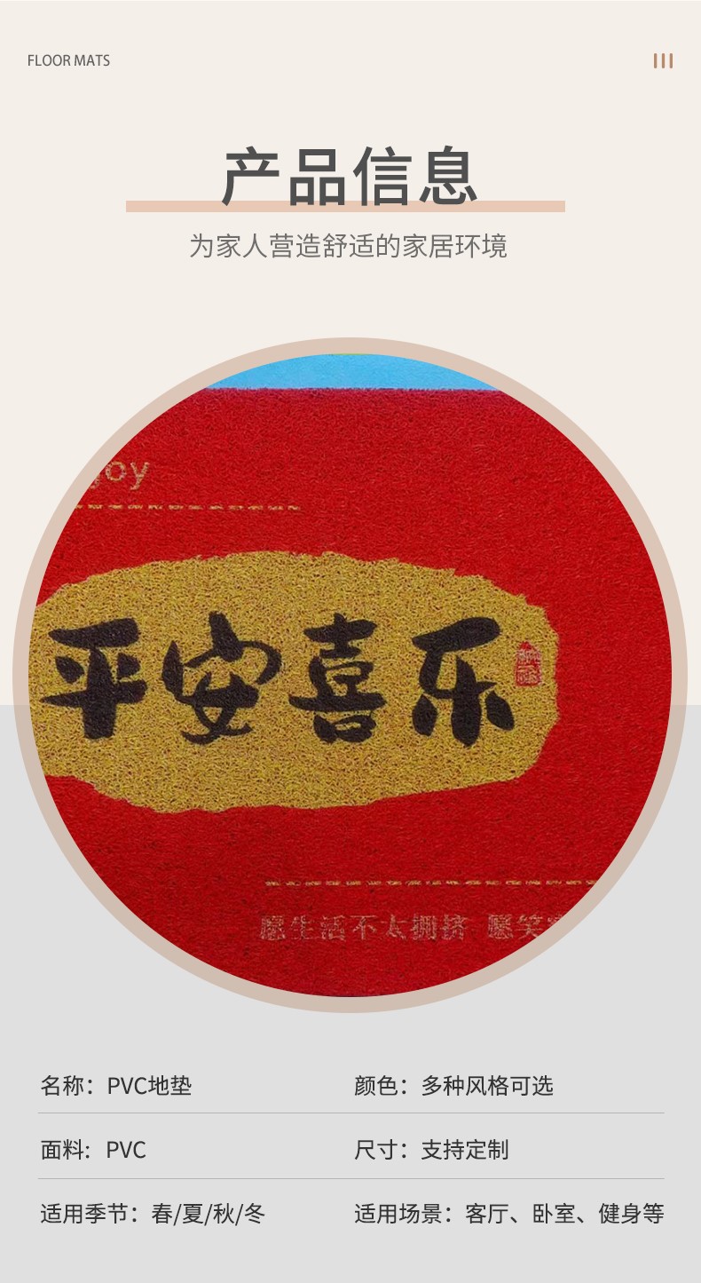 맞춤형 PVC 와이어 링 카펫 새해 축제 입구 문 입구 카펫 세척 가능 방수 미끄럼 방지 홈 바닥 매트스토어 가기