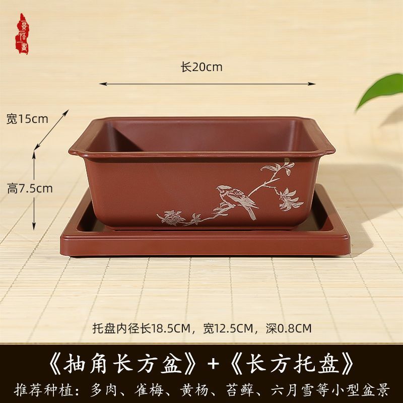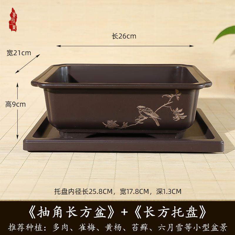 모조 보라색 모래 화분, 직사각형 수지 화분, 다육 식물, 실내 화분, 분재, 두꺼운 플라스틱 화분 도매