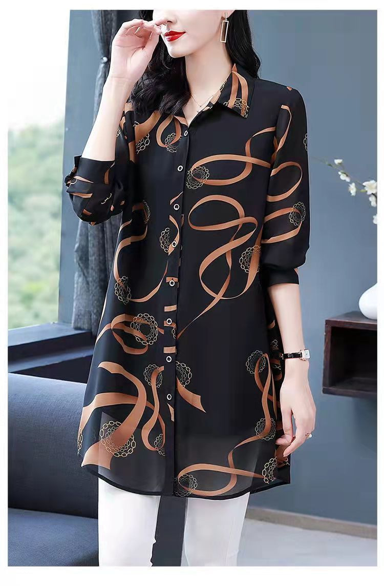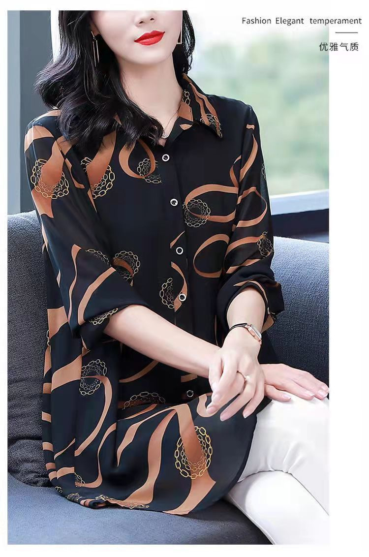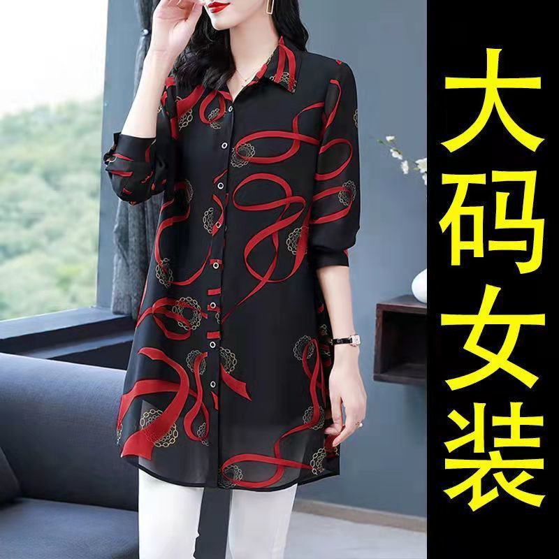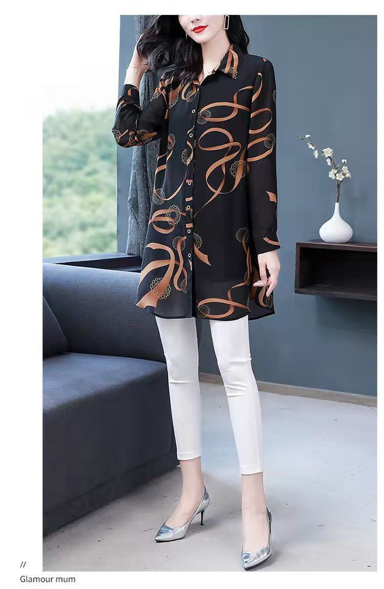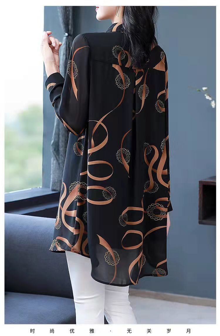 중년 엄마의 셔츠 새 봄 여성 셔츠 인쇄 플러스 사이즈 느슨한 중간 길이의 태양 방지 탑 봄과 여름