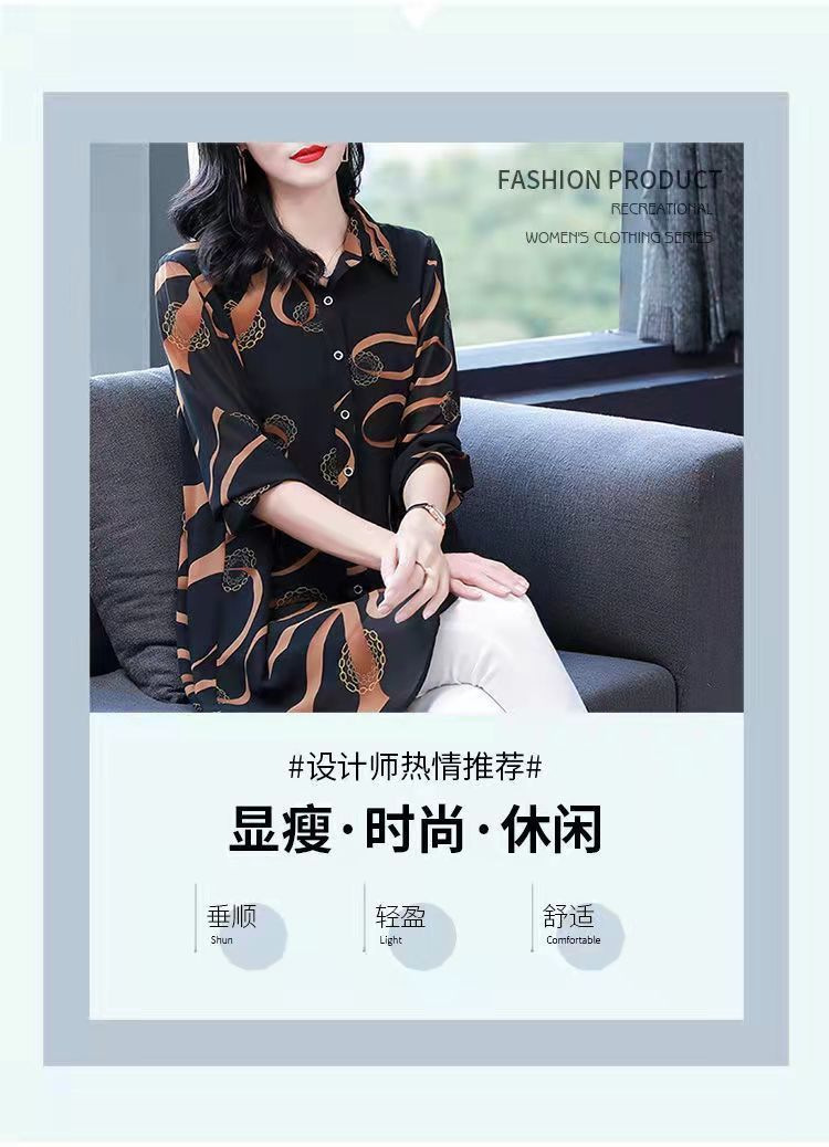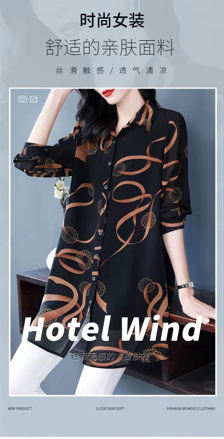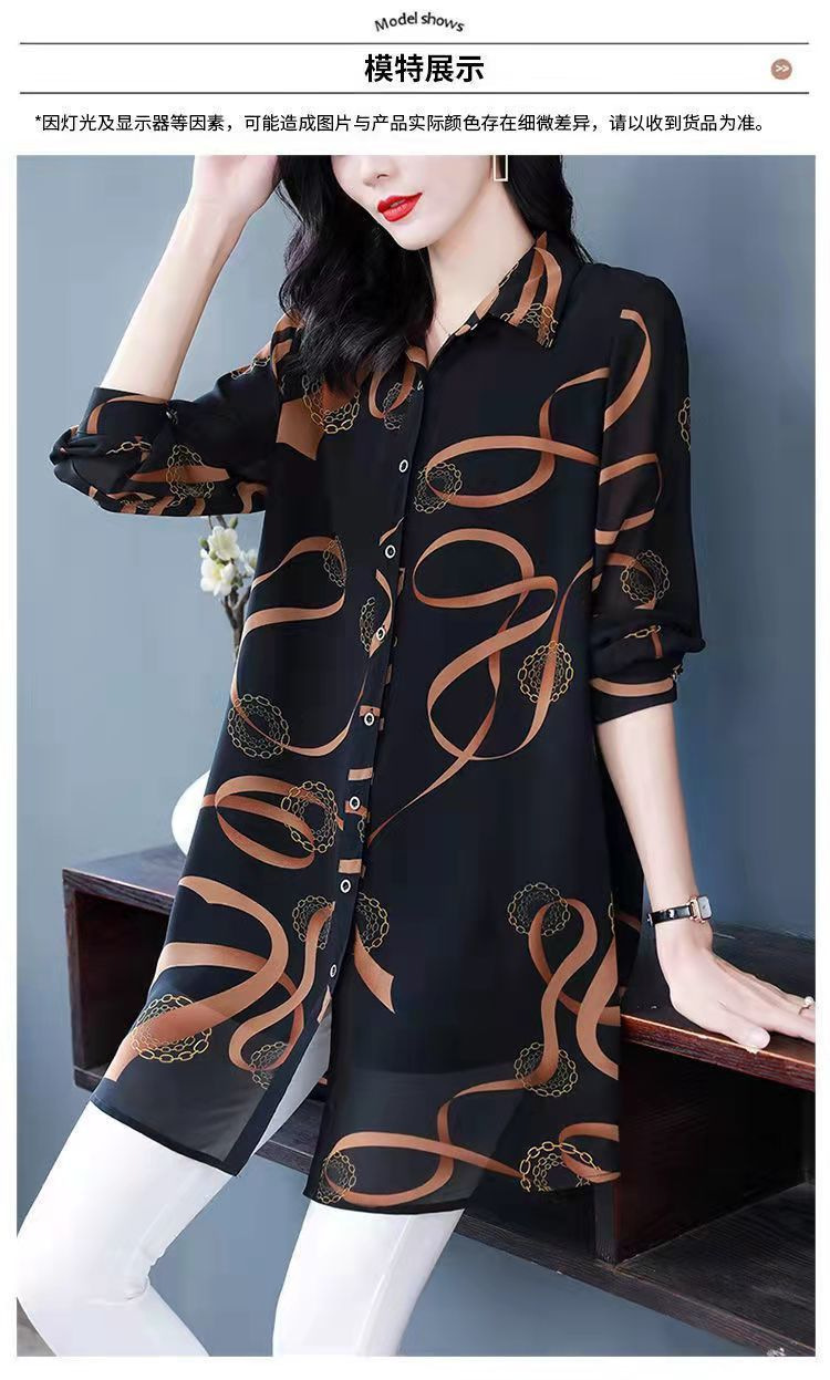 중년 엄마의 셔츠 새 봄 여성 셔츠 인쇄 플러스 사이즈 느슨한 중간 길이의 태양 방지 탑 봄과 여름스토어 가기