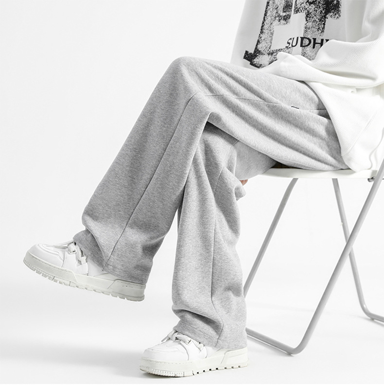 LKTM 남자 # 회색 스포츠 바지 남자 청소년 느슨한 스트레이트 드로 스트링 트렌디 한 올 매치 와이드 레그 캐주얼 스웨트 팬츠