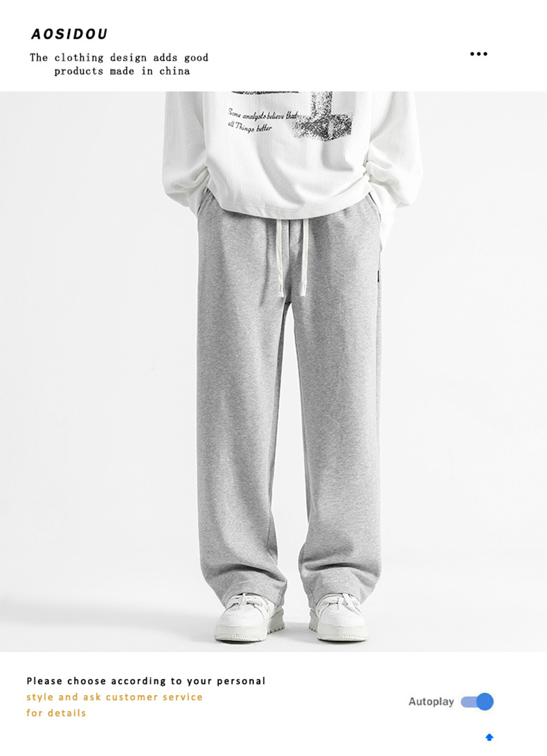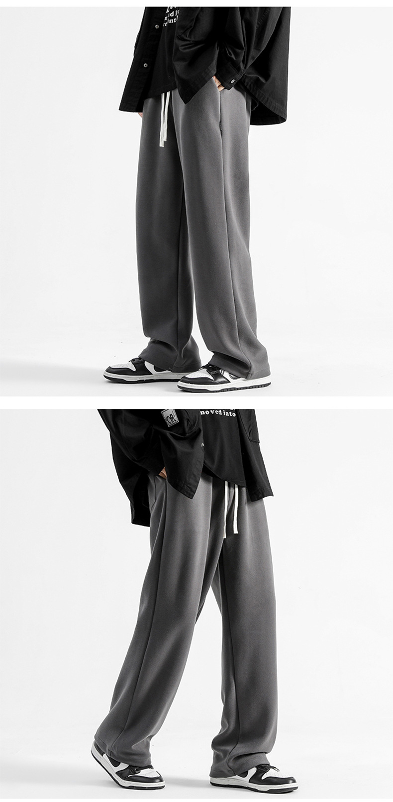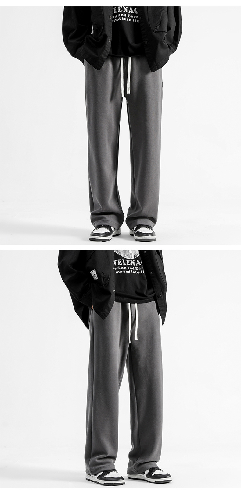 LKTM 남자 # 회색 스포츠 바지 남자 청소년 느슨한 스트레이트 드로 스트링 트렌디 한 올 매치 와이드 레그 캐주얼 스웨트 팬츠스토어 가기