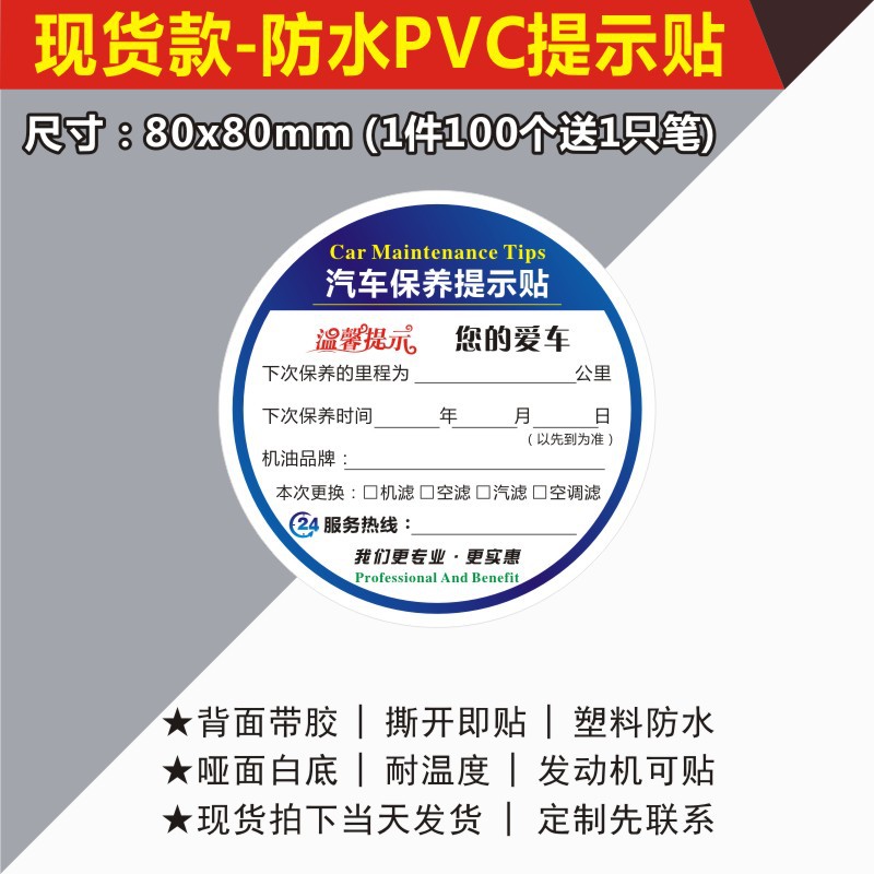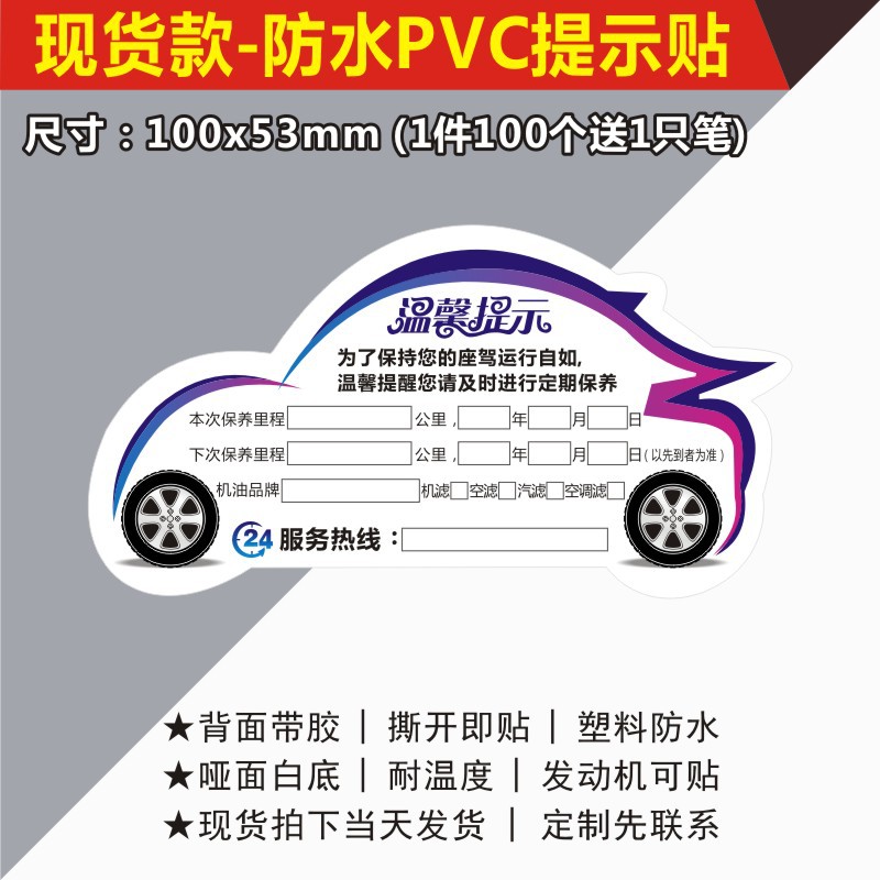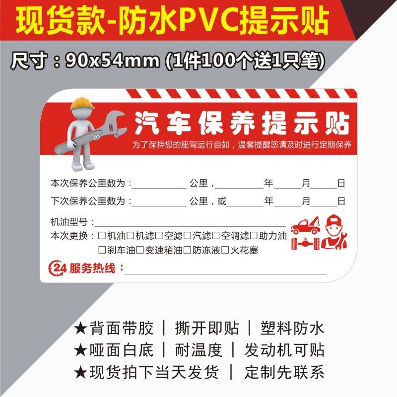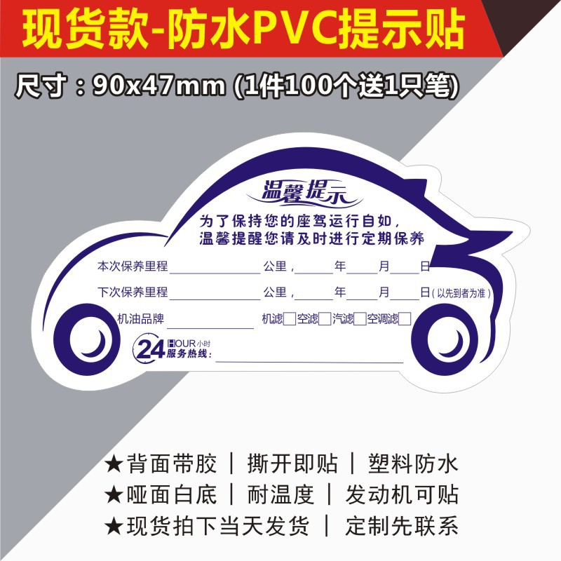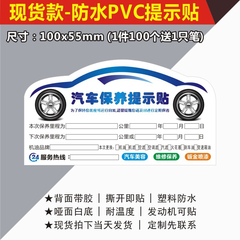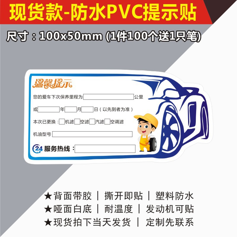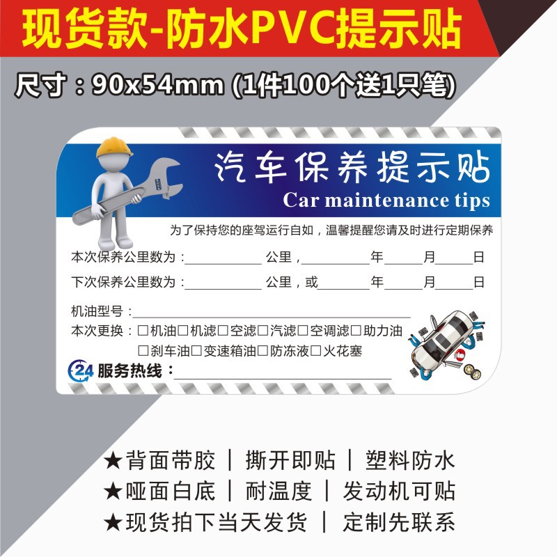 자동차 유지 보수 스티커 정적 스티커 자동 수리 공장 오일 수리 알림 태그 레코드 라벨 스티커 C