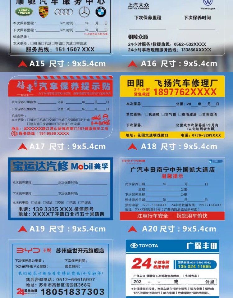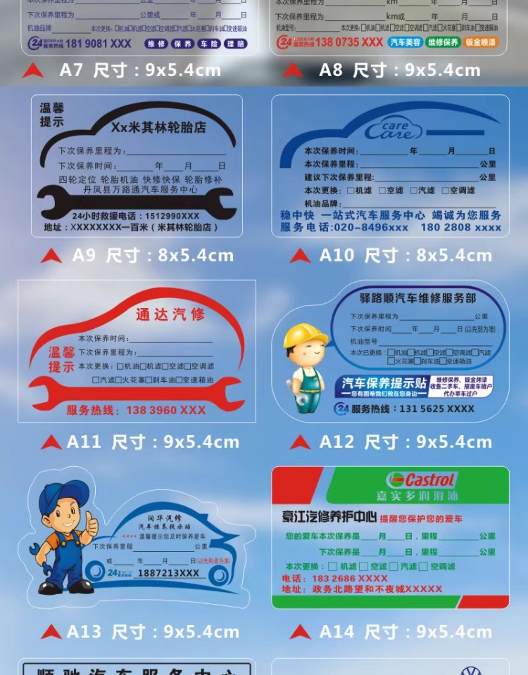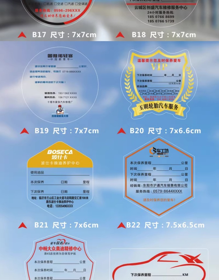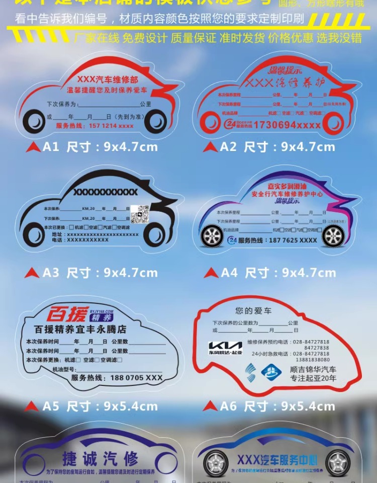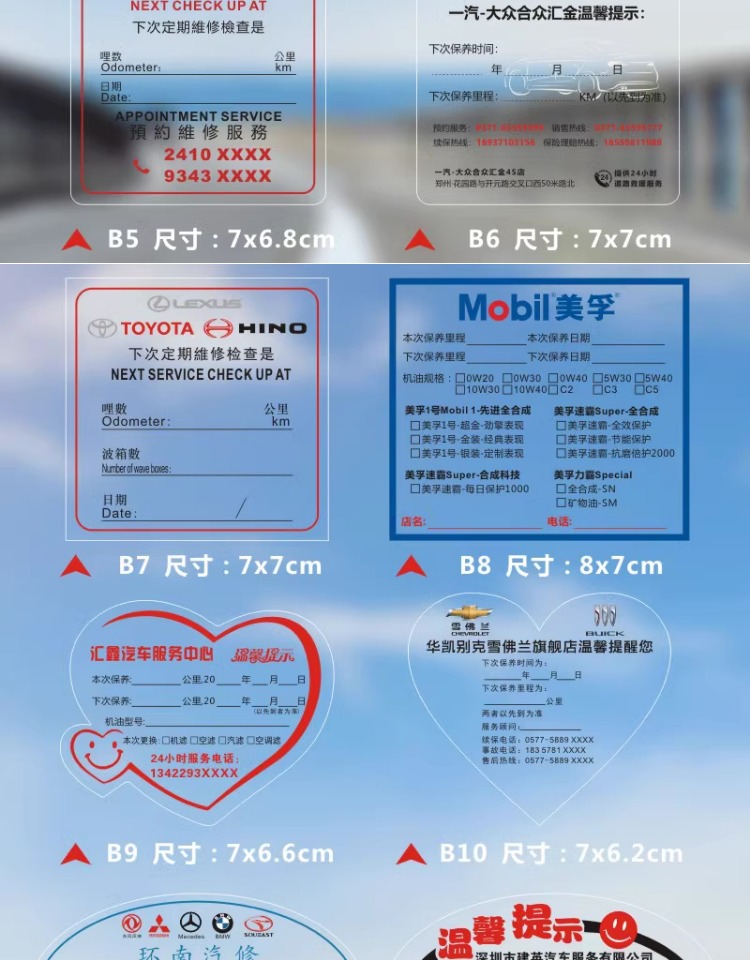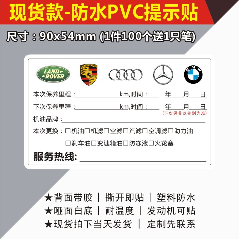 자동차 유지 보수 스티커 정적 스티커 자동 수리 공장 오일 수리 알림 태그 레코드 라벨 스티커 C