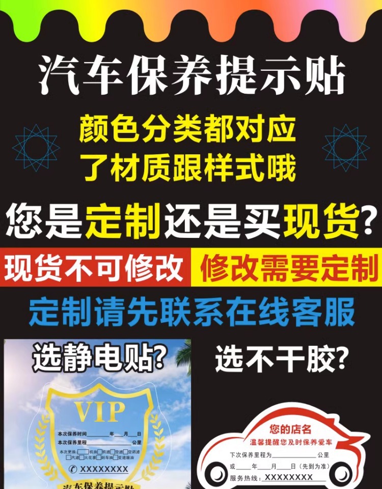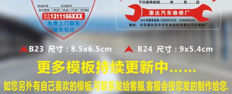 자동차 유지 보수 스티커 정적 스티커 자동 수리 공장 오일 수리 알림 태그 레코드 라벨 스티커 C스토어 가기