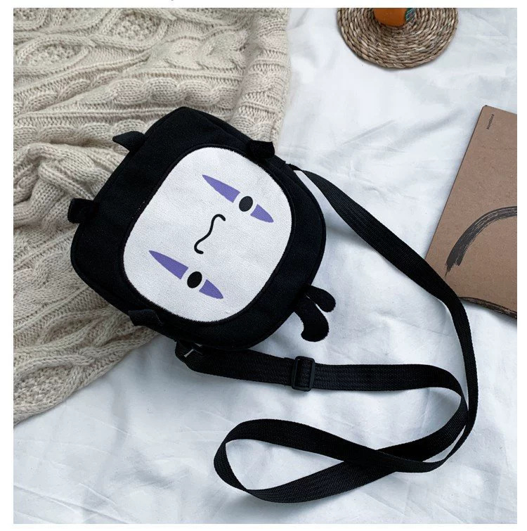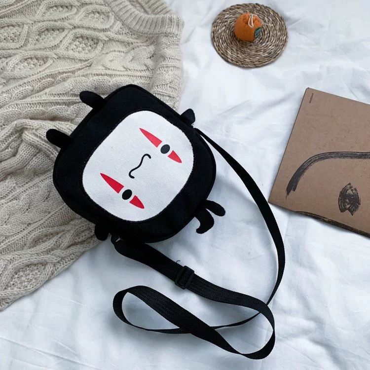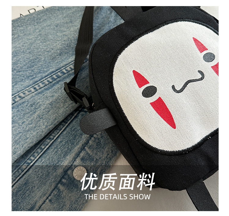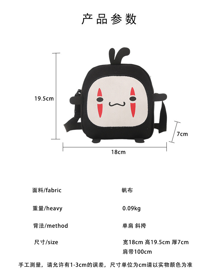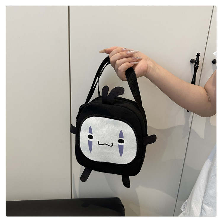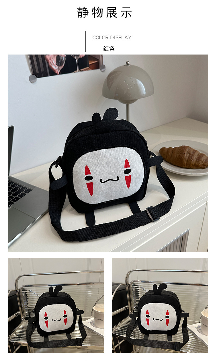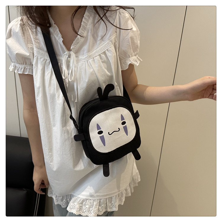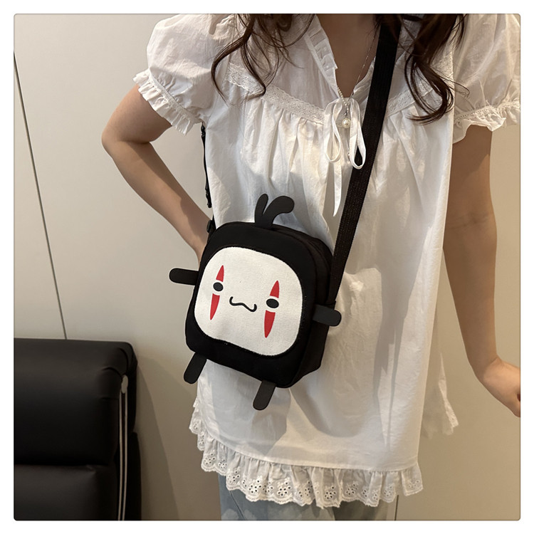 한국 스타일 추악한 귀여운 작은 가방 여성 가방 새로운 2024 여름 작은 둥근 가방 괴물 만화 캔버스 메신저 가방스토어 가기