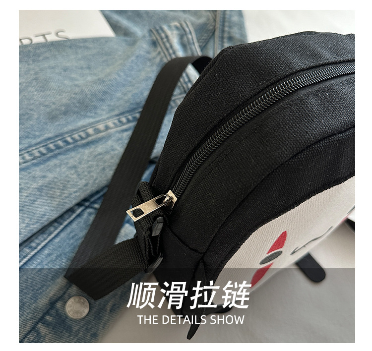 한국 스타일 추악한 귀여운 작은 가방 여성 가방 새로운 2024 여름 작은 둥근 가방 괴물 만화 캔버스 메신저 가방
