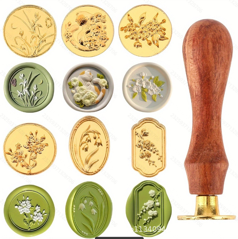 • 6개의 씰 헤드 + 적갈색 원목 손잡이로 구성된 완전한 세트