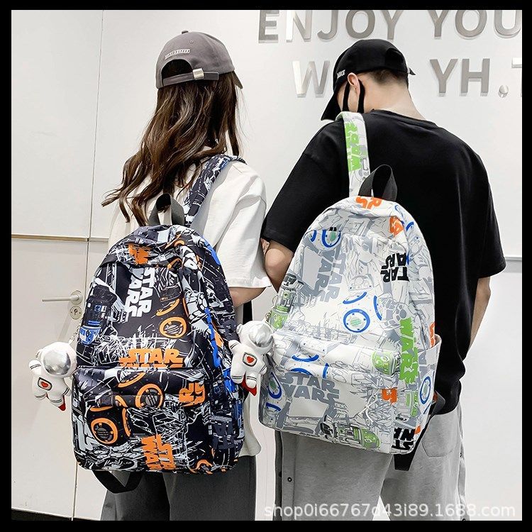 Schoolbag 남성용 패셔너블 백팩 일본 하라주쿠 스타일 맞춤형 낙서 대학 학생 책가방 간단한 올 매치 배낭 여성스토어 가기