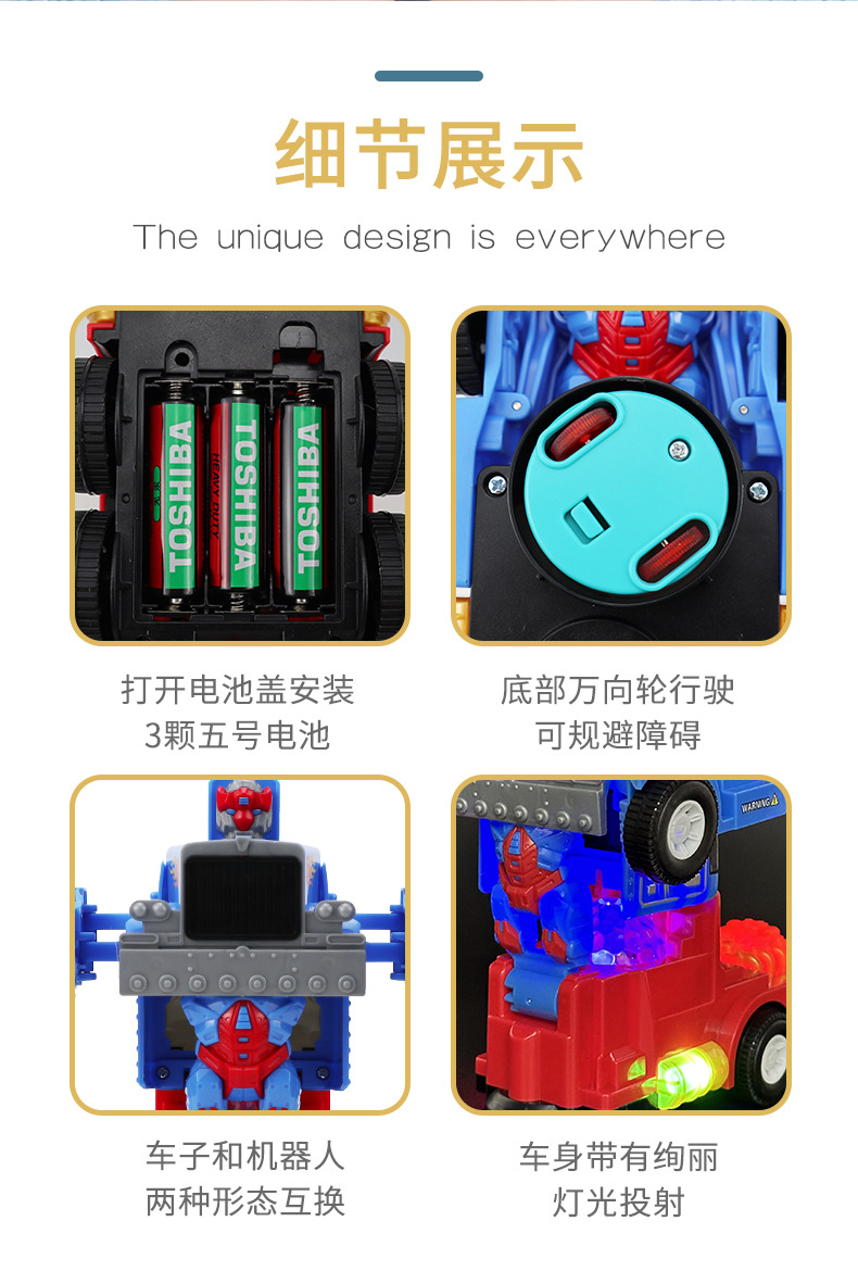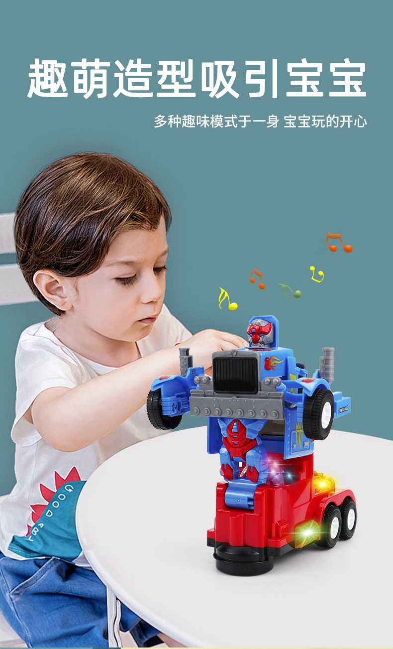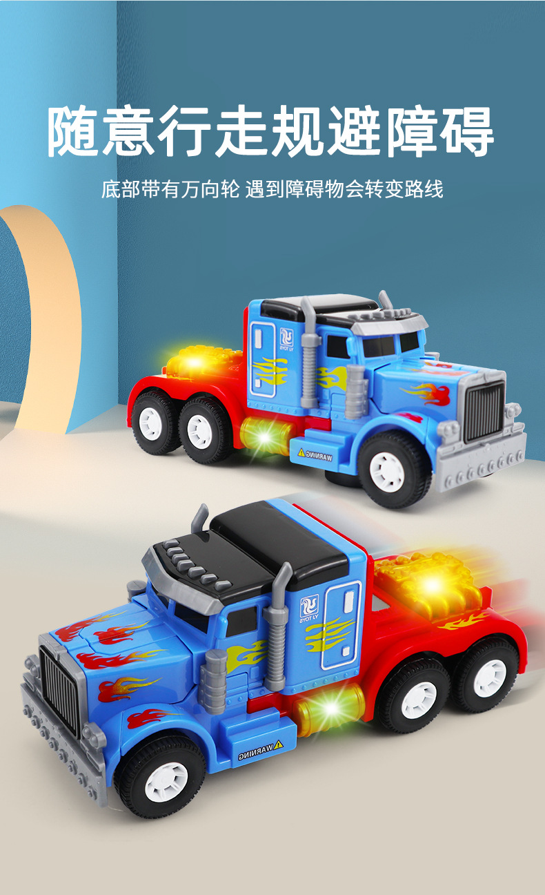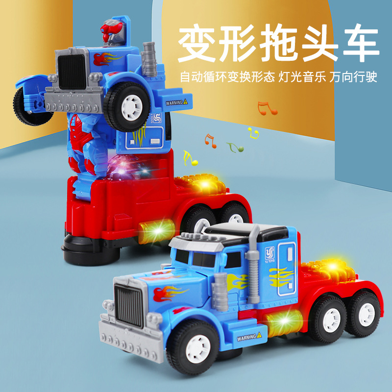 국경 새로운 어린이 전기 변형 장난감 빛 음악 자동 변형 로봇 트레일러 장난감 자동차 도매스토어 가기