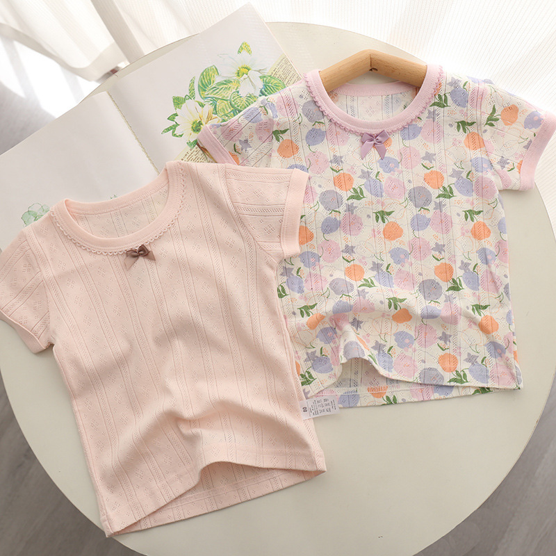 여름 일본 중소 아동복 반소매 최고 순면 클래스 소녀 아기 반소매 티셔츠 홈 아우터 웨어
