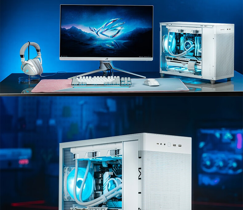 桌面美学:白色钢玻侧透设计,适配简约风或电竞风桌面华硕官网。