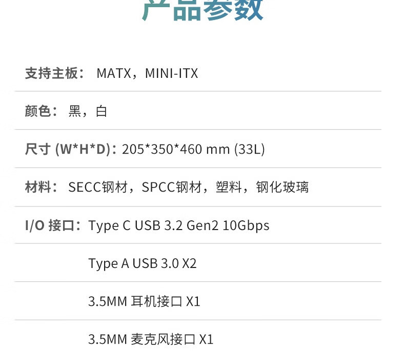 主板支持:兼容 MATX 和 Mini-ITX 主板,适合紧凑装机方案。