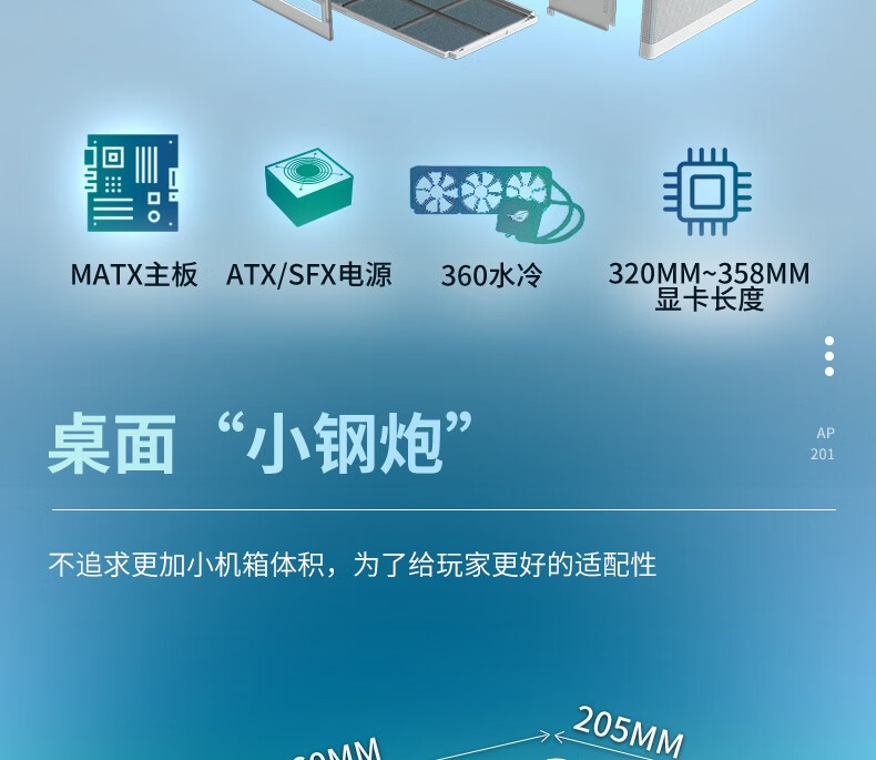 游戏主机:支持 360mm 水冷和长显卡,适合高性能游戏平台。