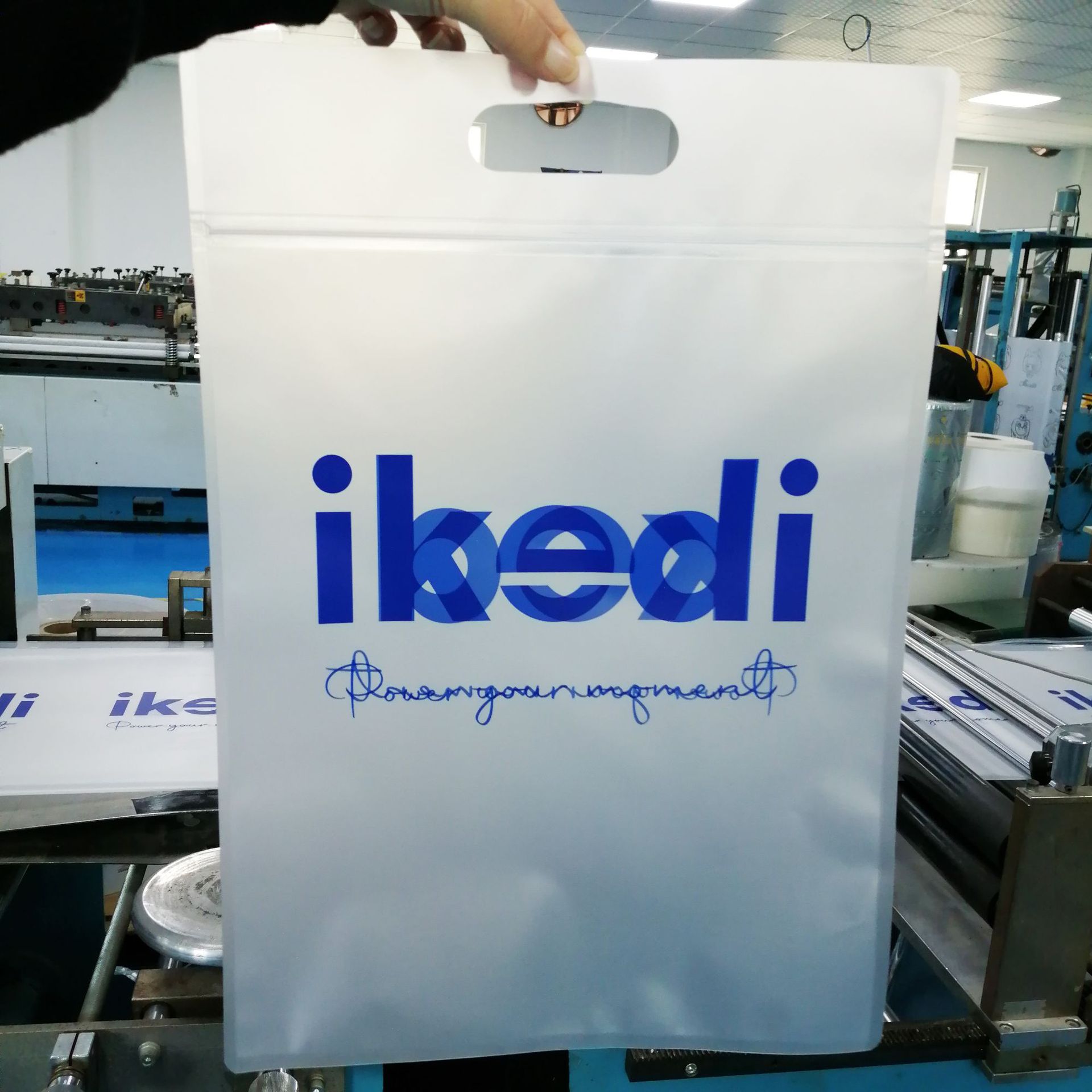 제조 업체 도매 의류 플라스틱 핸드백 맞춤 선물 네 손가락 포장 가방 로고가 인쇄 된 복합 뼈 핸드백스토어 가기