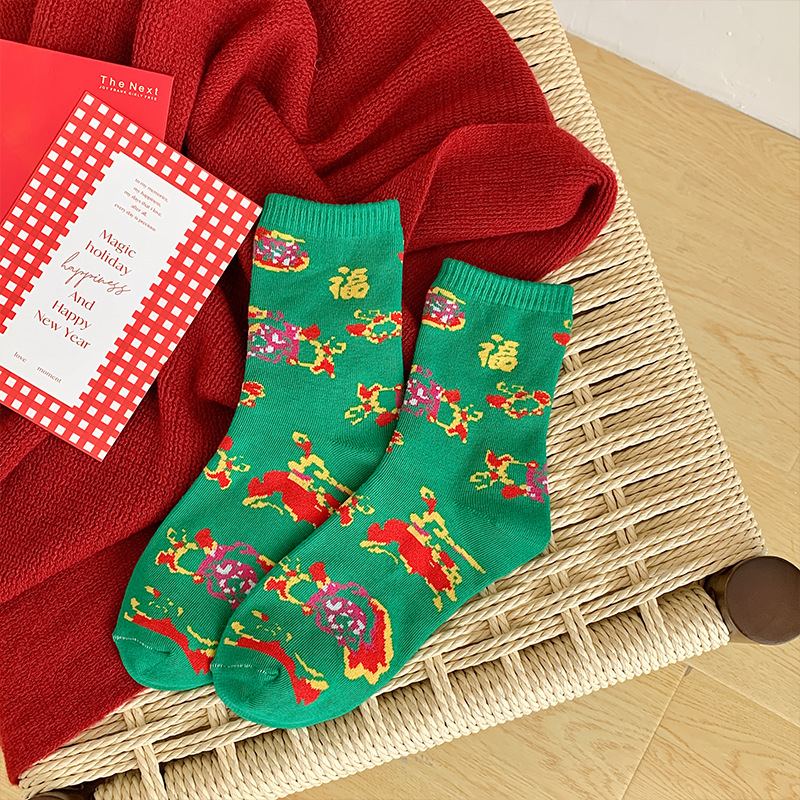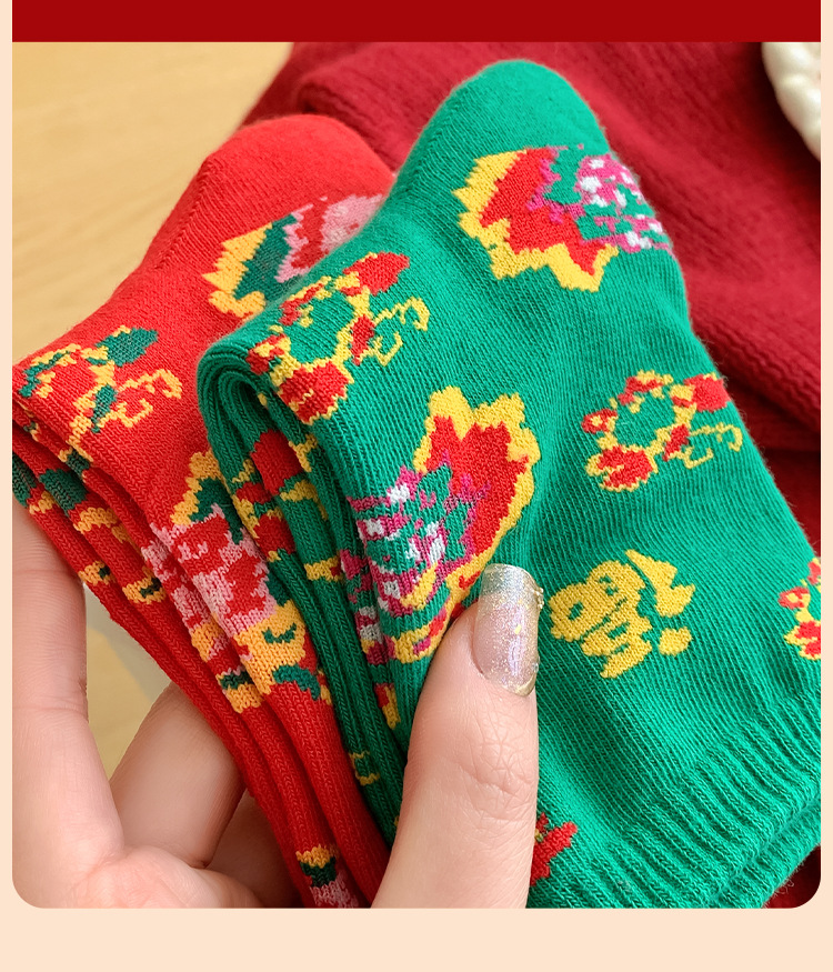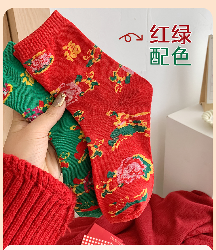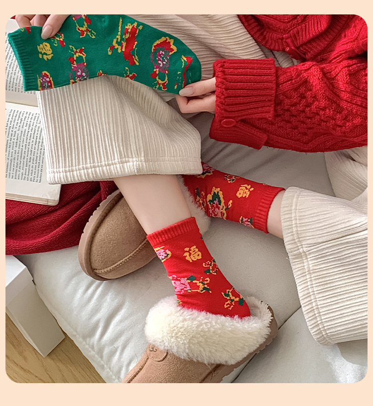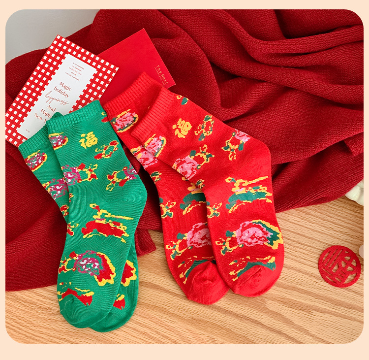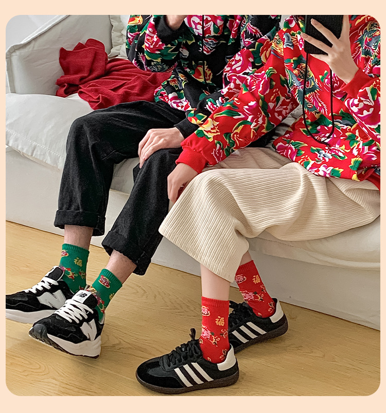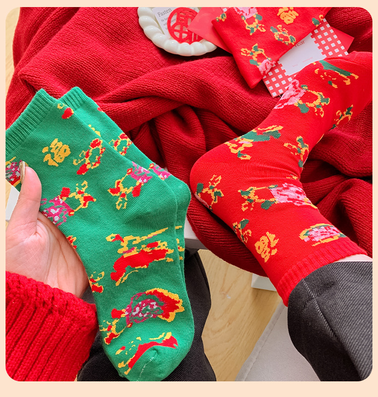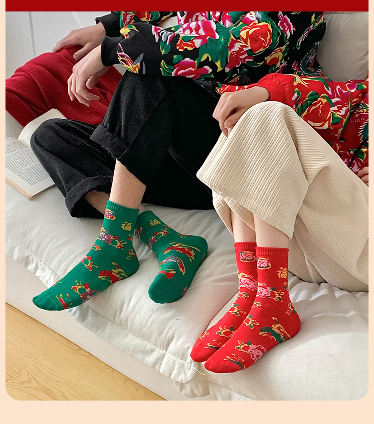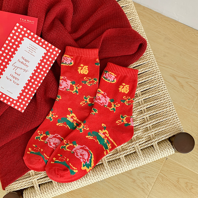 동북 큰꽃 양말 남녀 중간관 양말 해피한 해 붉은 양말 맞춤형 동북풍 설날 양말