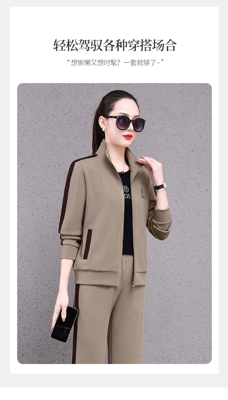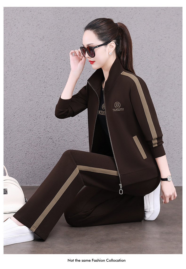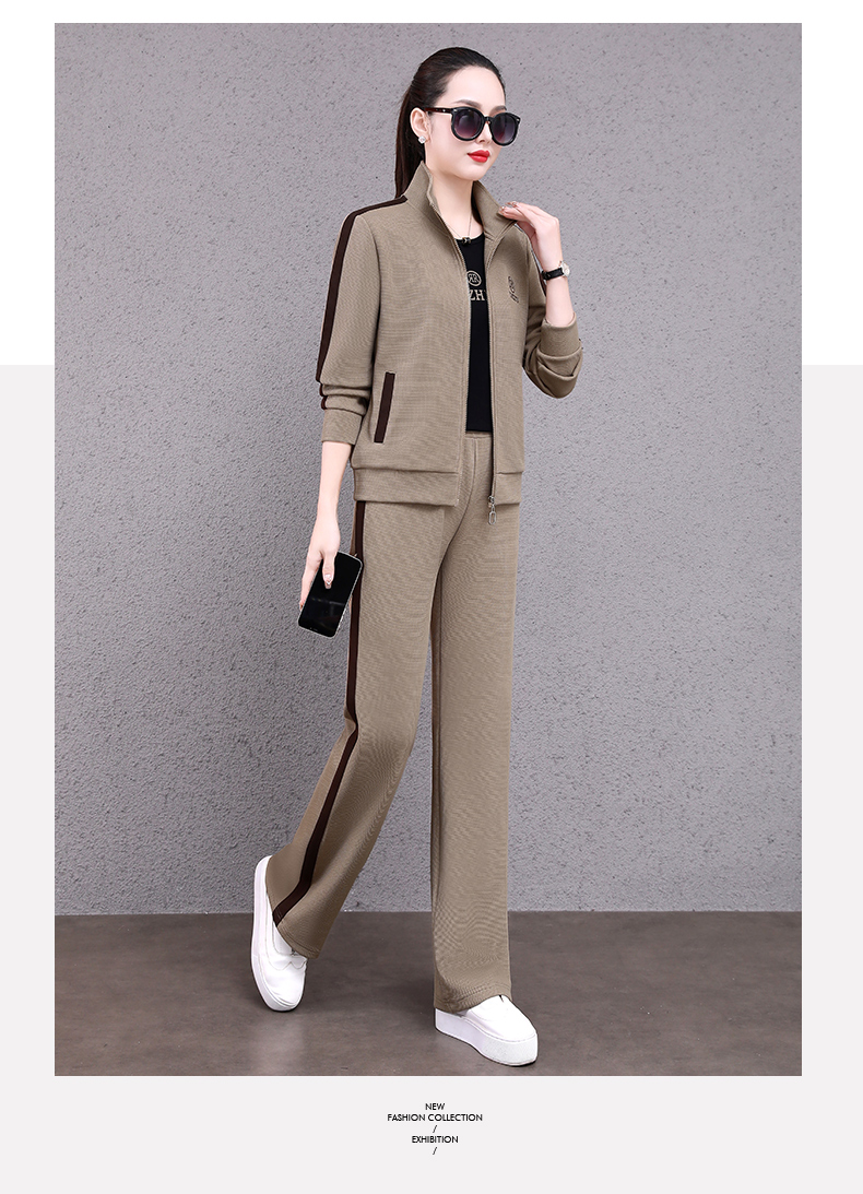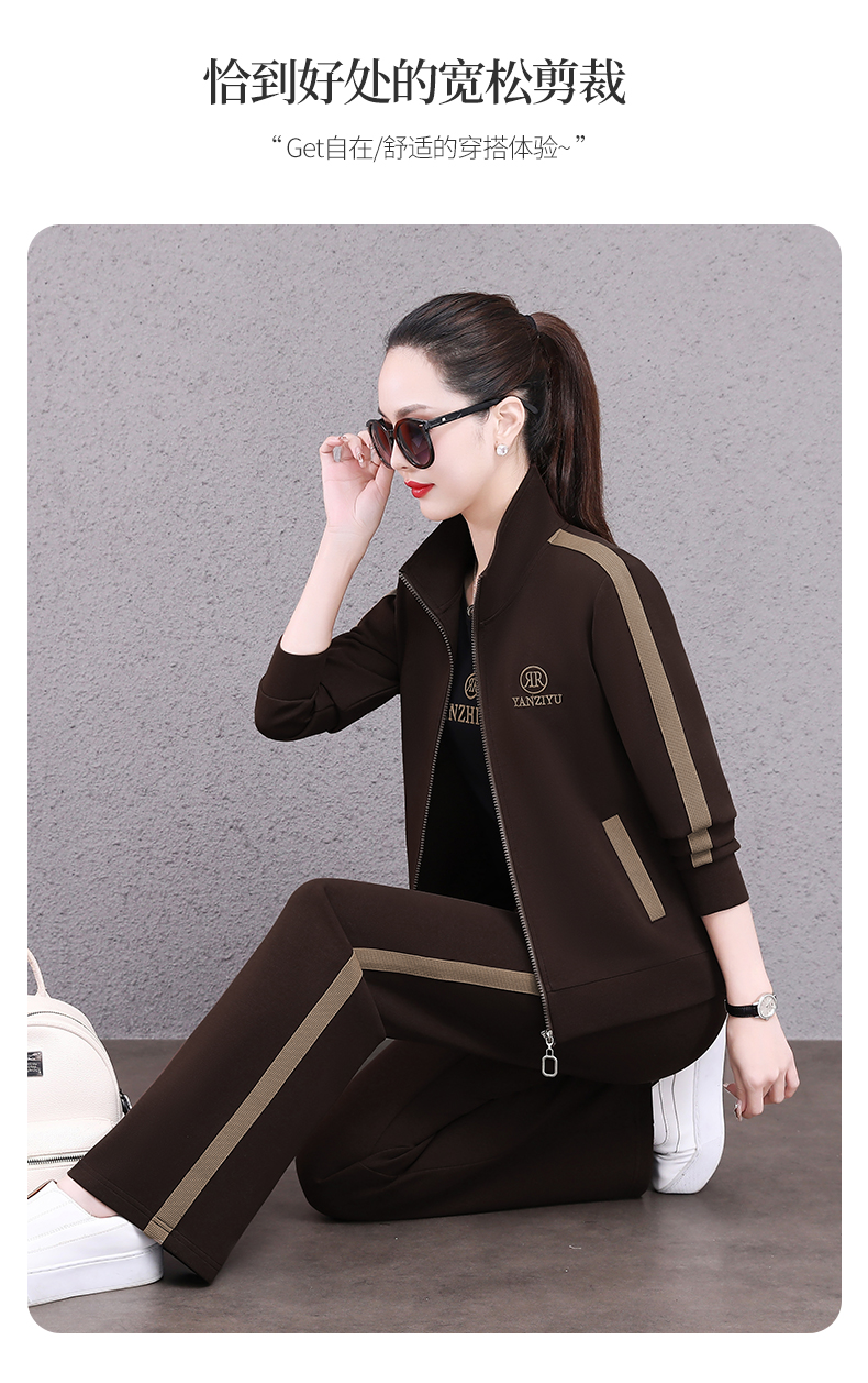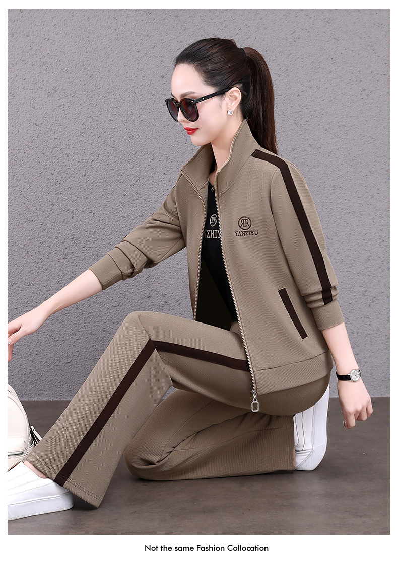 스포츠 세트 여성의 봄과 가을 새로운 패션 스탠드 칼라 서양식 단색 느슨한 캐주얼 서양식 연령 감소 러닝 3 피스 세트스토어 가기